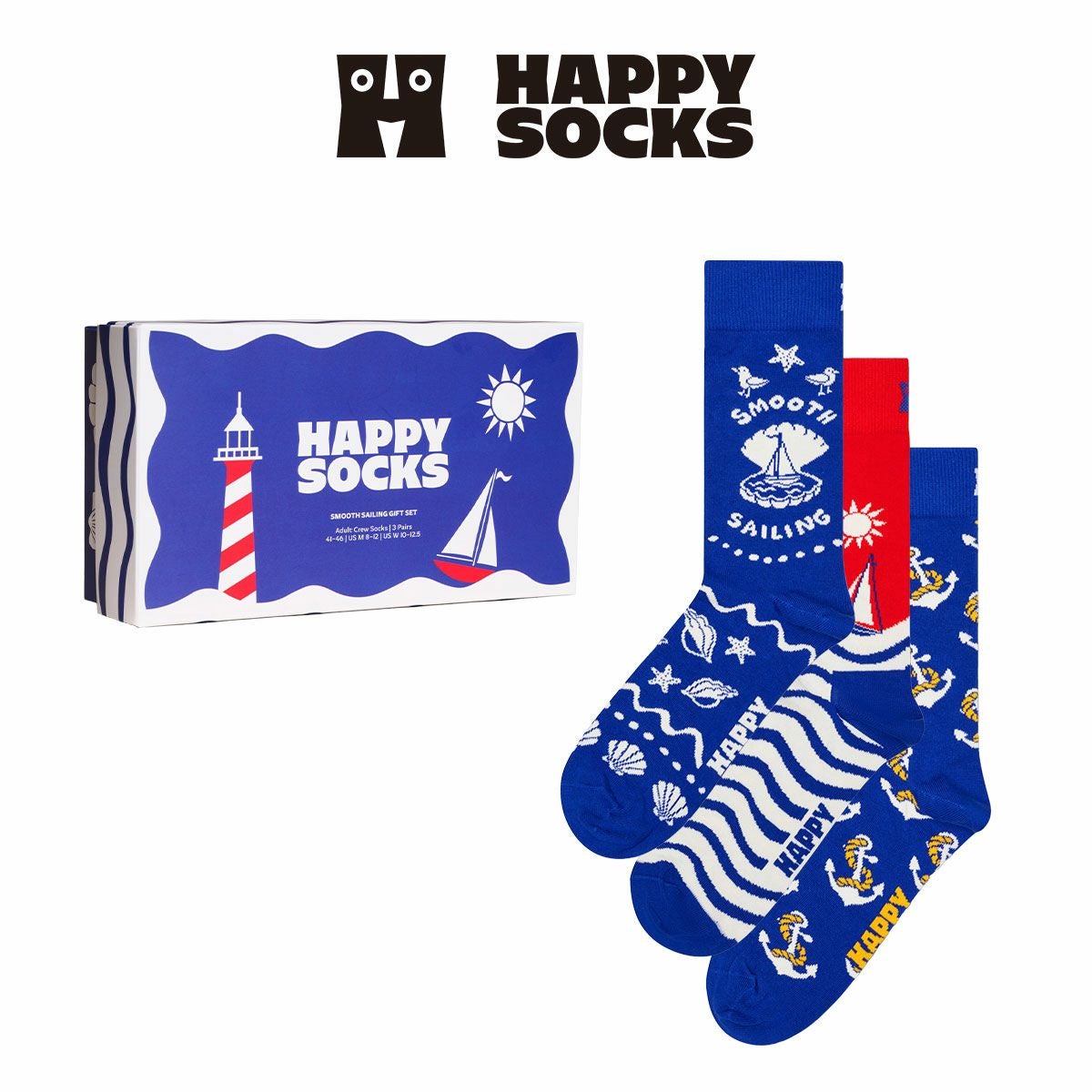 ハッピーソックス 公式ショップ メンズ & レディス 靴下 41%OFF Happy Socks 3足セット 箱入り|Smooth Sailing ( スムーズセイリング )【GIFT BOX】クルー丈 ソックス ユニセックス & 10254010