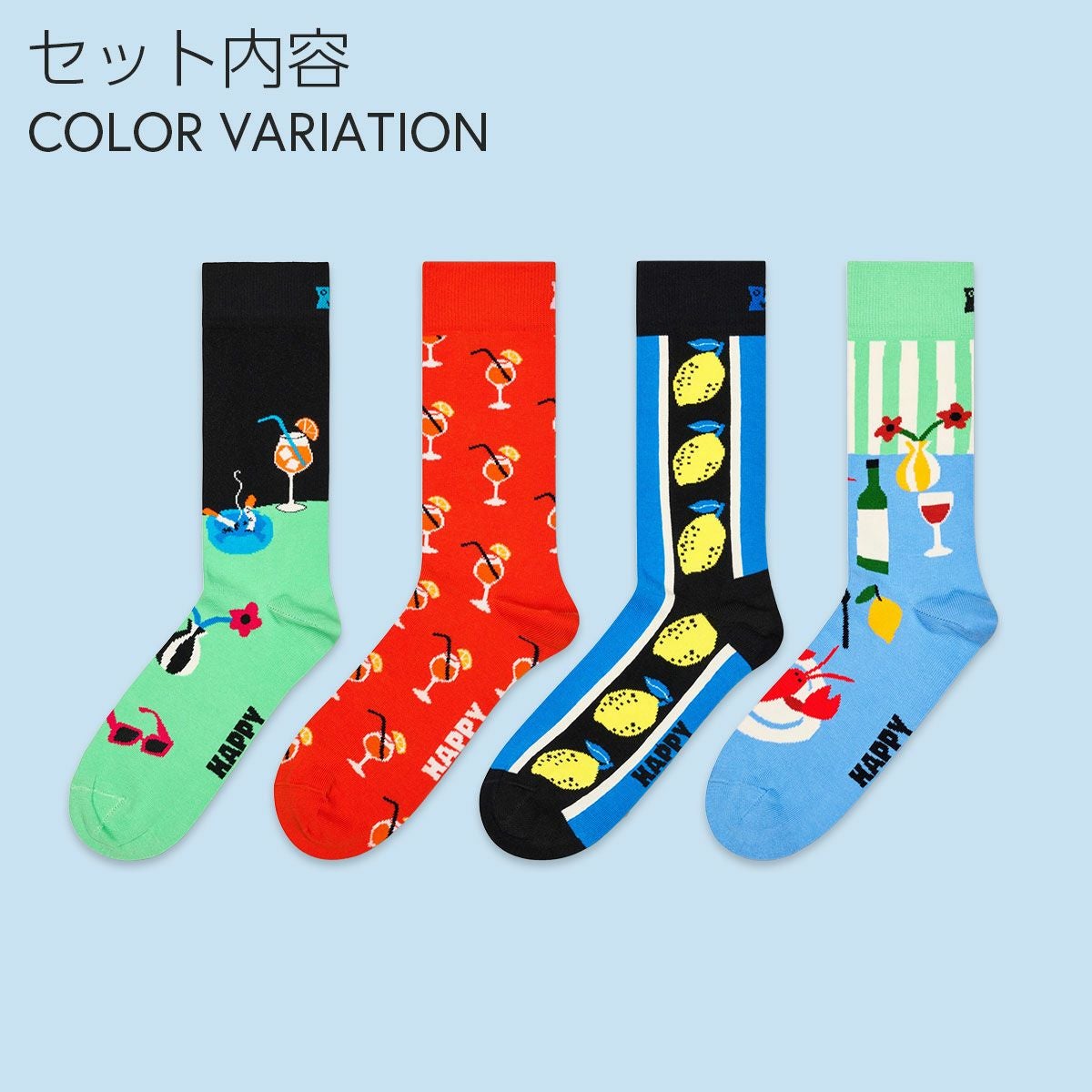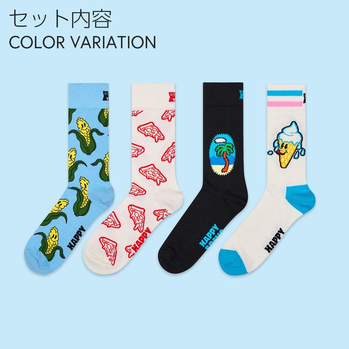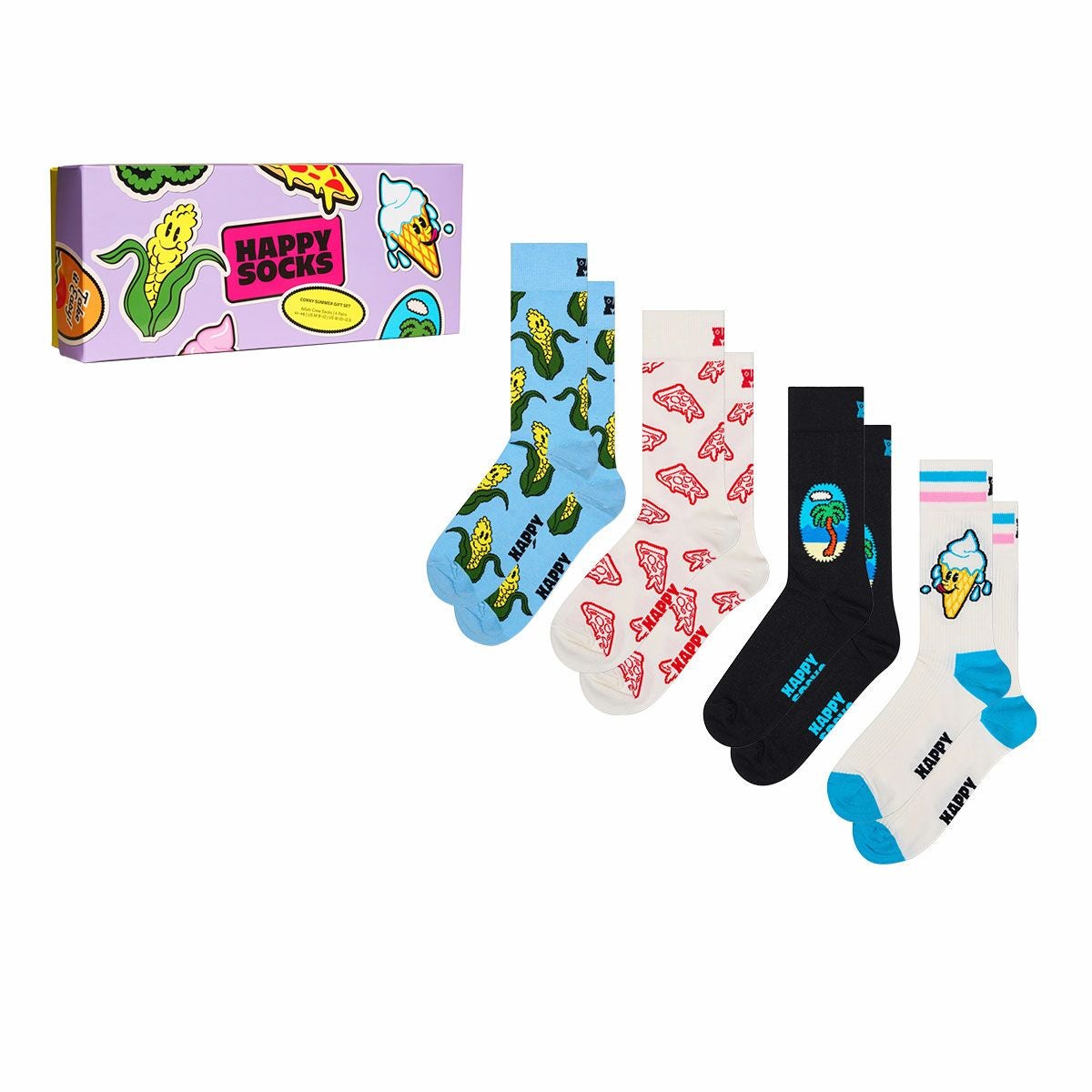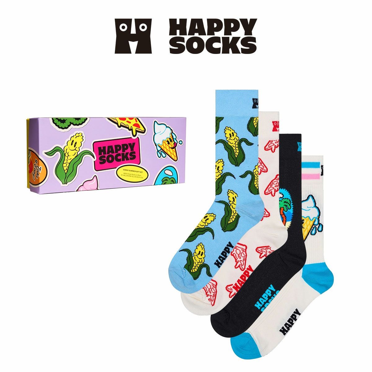 ハッピーソックス 公式ショップ メンズ & レディス 靴下 41%OFF Happy Socks 4足セット 箱入り|Corny Summer ( コーニー サマー )【GIFT BOX】クルー丈 ソックス ユニセックス & 10254012