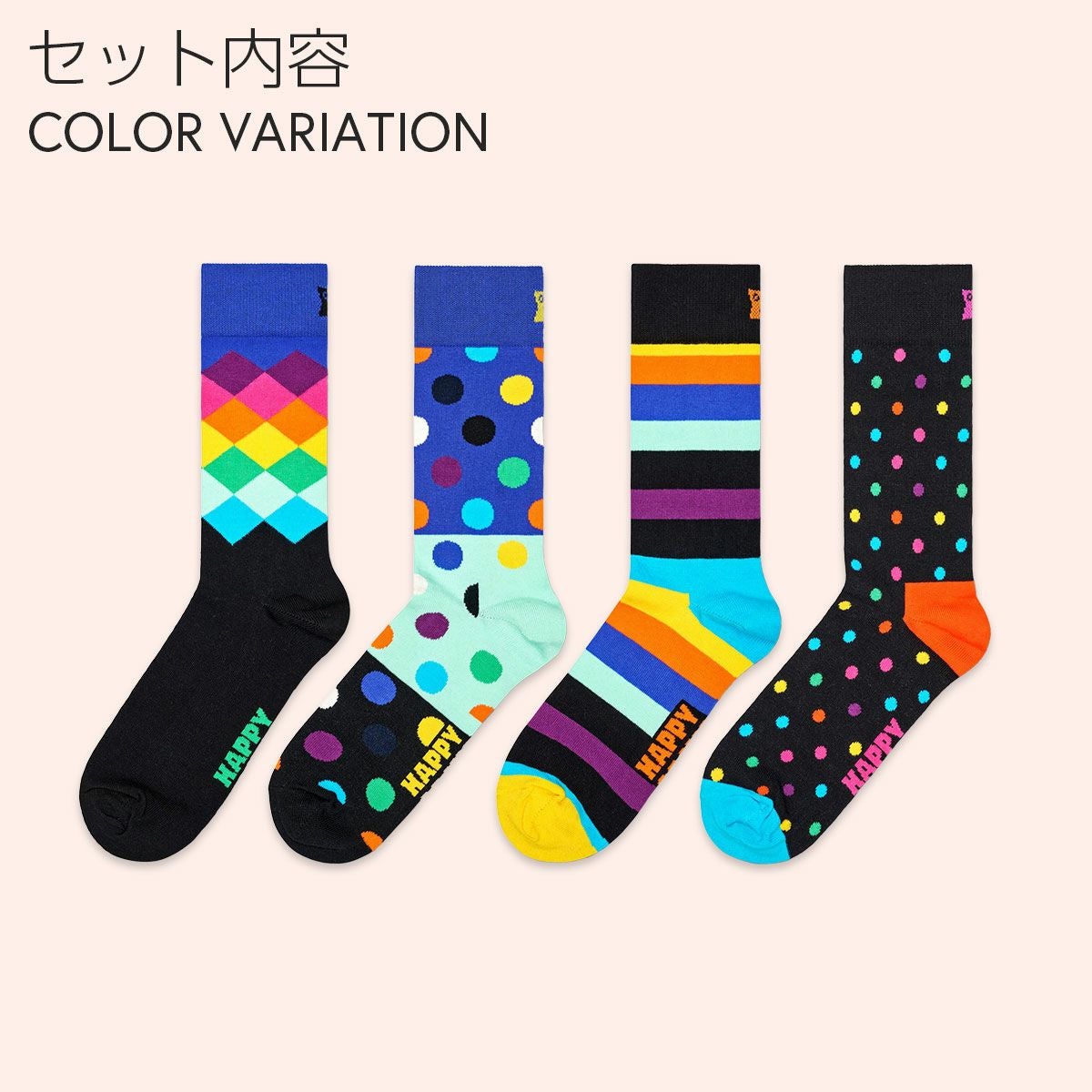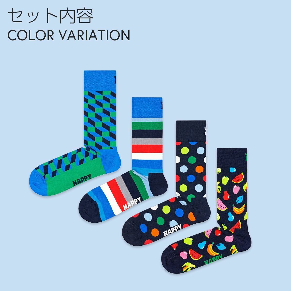 ハッピーソックス GIFT BOX 公式ショップ メンズ & レディス 靴下 41%OFF Happy Socks 4足セット 箱入り|Fancy Dinner ( ファンシー ディナー )クルー丈 ソックス ユニセックス 10254013