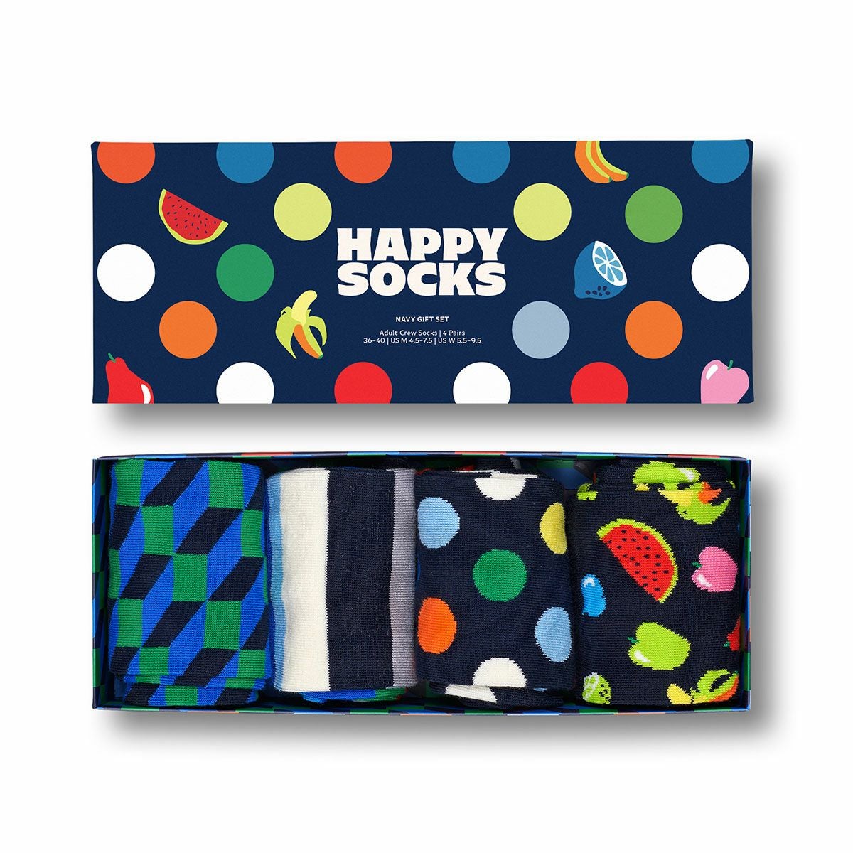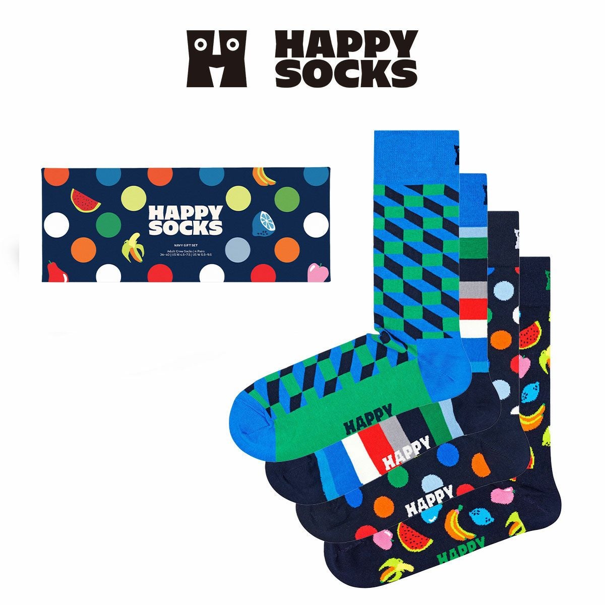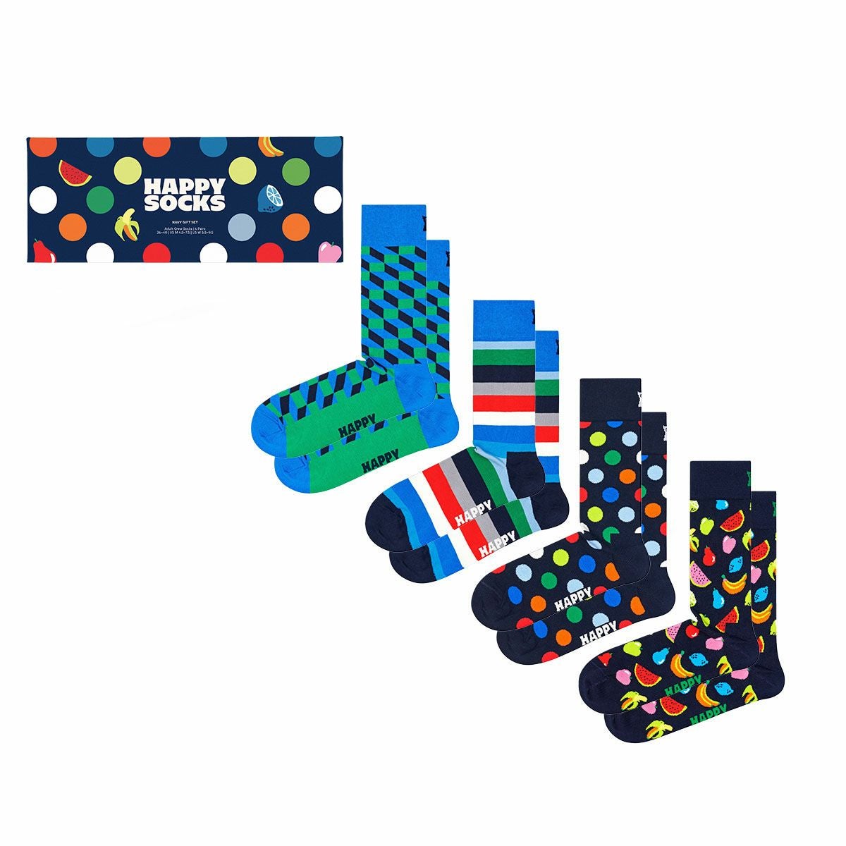 ハッピーソックス 公式ショップ メンズ & レディス 靴下 41%OFF Happy Socks 4足セット 箱入り|Navy ( ネイビー )【GIFT BOX】クルー丈 ソックス ユニセックス & 10254019