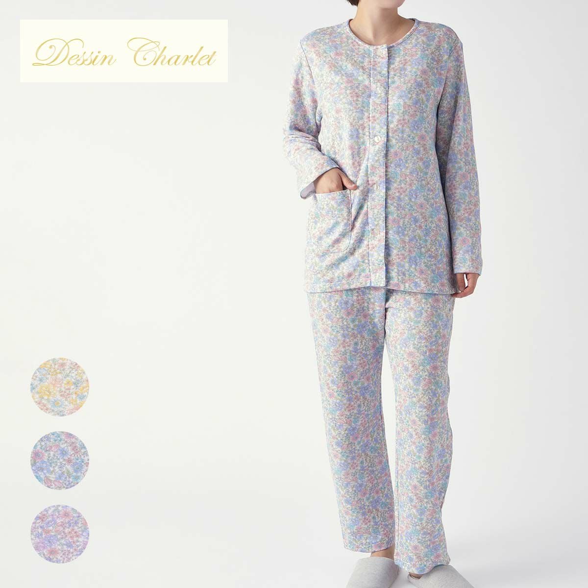 デッサンシャーレ 女性 婦人 パジャマ 50%OFF Dessin Charlet 肌側綿100% ソフトキルト 葉柄 パジャマ 長袖 長丈パンツ【Mサイズ】レディース 73973122