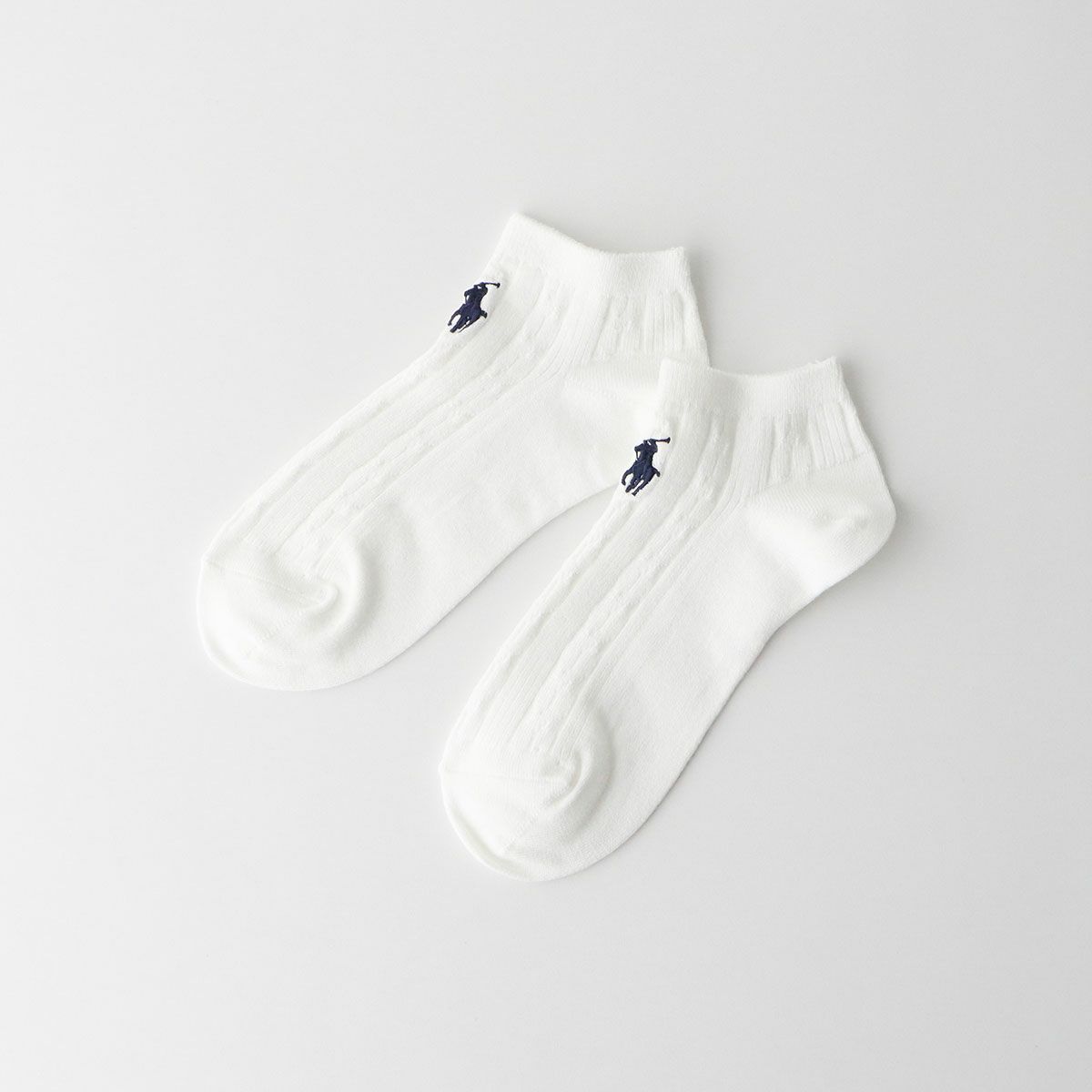 ポロ ラルフ ローレン 婦人 靴下 POLO RALPH LAUREN ケーブル柄 ワンポイント ショート丈ソックス オーガニックコットン混 レディース 03207386
