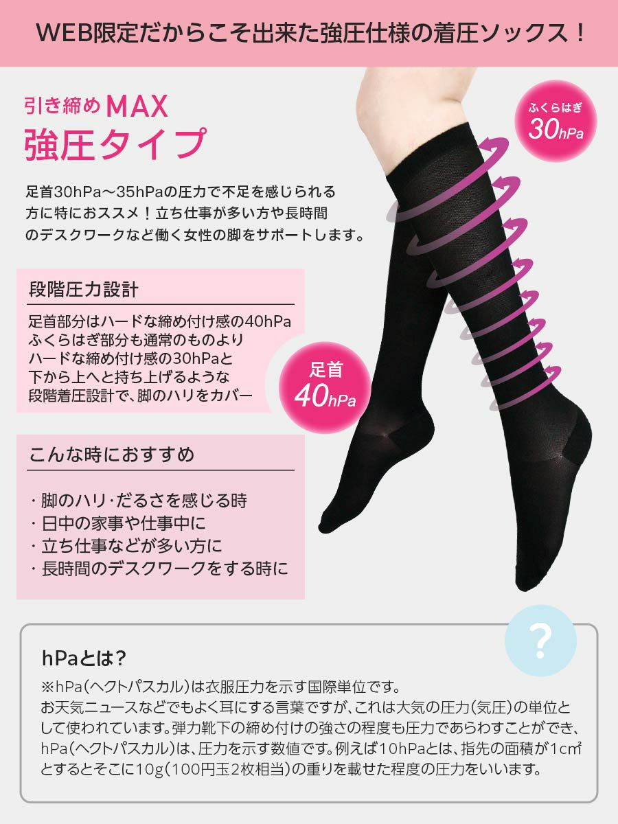 足首40hPa ふくらはぎ30hPa ハイソックス 弾性ストッキング 加圧ソックス