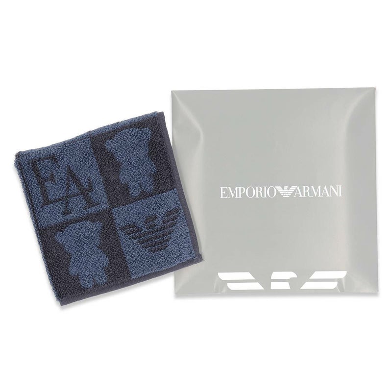 7. EMPORIO ARMANI EAマンガベア タオルハンカチ 綿100% 日本製 メンズ 【365日最短翌日発送】02340014
