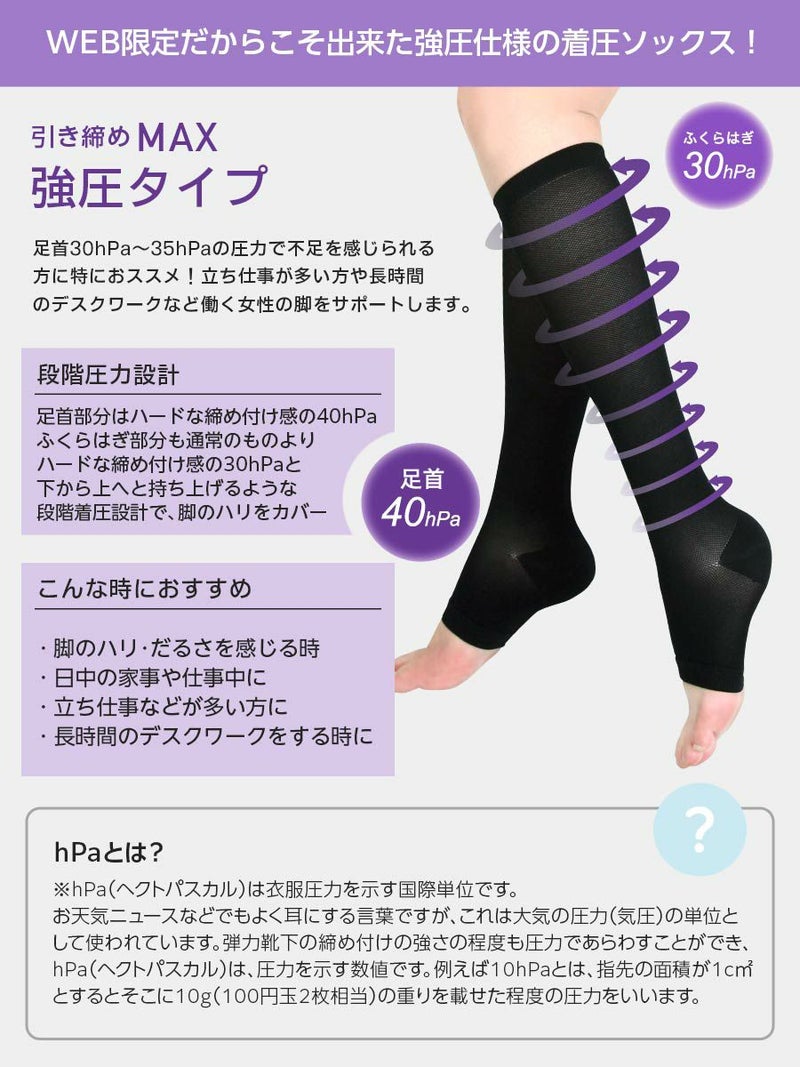 消臭糸使用、強圧・ふくらはぎ30hPa 足首40hPa (30mmHg)