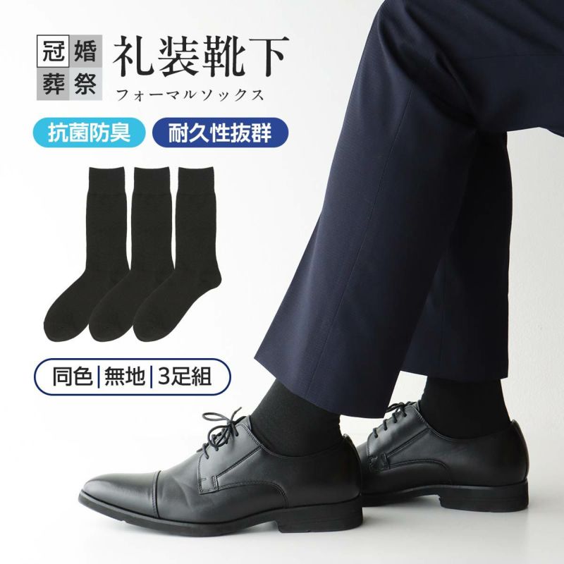 ナイガイ 冠婚葬祭時の礼装用フォーマル仕様 つま先・かかと補強 黒 平編み 無地 メンズ ソックス 靴下 ビジネス ソックス 【礼装 3足セット】いざという時に役立つフォーマルソックス メンズ (冠婚葬祭・礼装用・葬式・法事・結婚式) 抗菌防臭 クルー丈 【365日最短翌日発送】 90301031