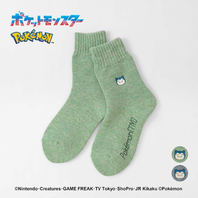 カビゴン が刺繍された内側起毛素材のあったか メンズ ルームソックス です。