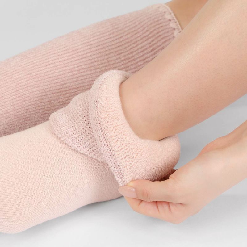 ハマグリ パイル は内側がロングループのパイル編みになっており、普通のパイル編みの靴下よりパイルが長く、厚く作られています。この長いパイルと肌の間に空気をため込むことで、高い保温性を発揮し、床からの冷気を防いで足もとを温めます。また、ふかふかなロングループにより、クッション性にも優れており、履き心地が快適です。