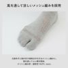 土踏まずと指の付け根部分が大きなメッシュ編みに。風を通してムレ感を軽減。