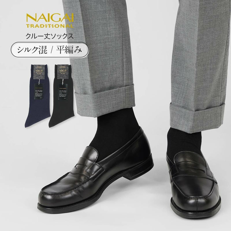日本の靴下技術の伝統と誇りを語る最高級の紳士靴下 紳士 男性 高級靴下 NAIGAI TRADITIONAL SUPERIOR(スーペリオール) シルクブレンド ビジネスソックス 平無地 クルー丈 メンズ 02390005