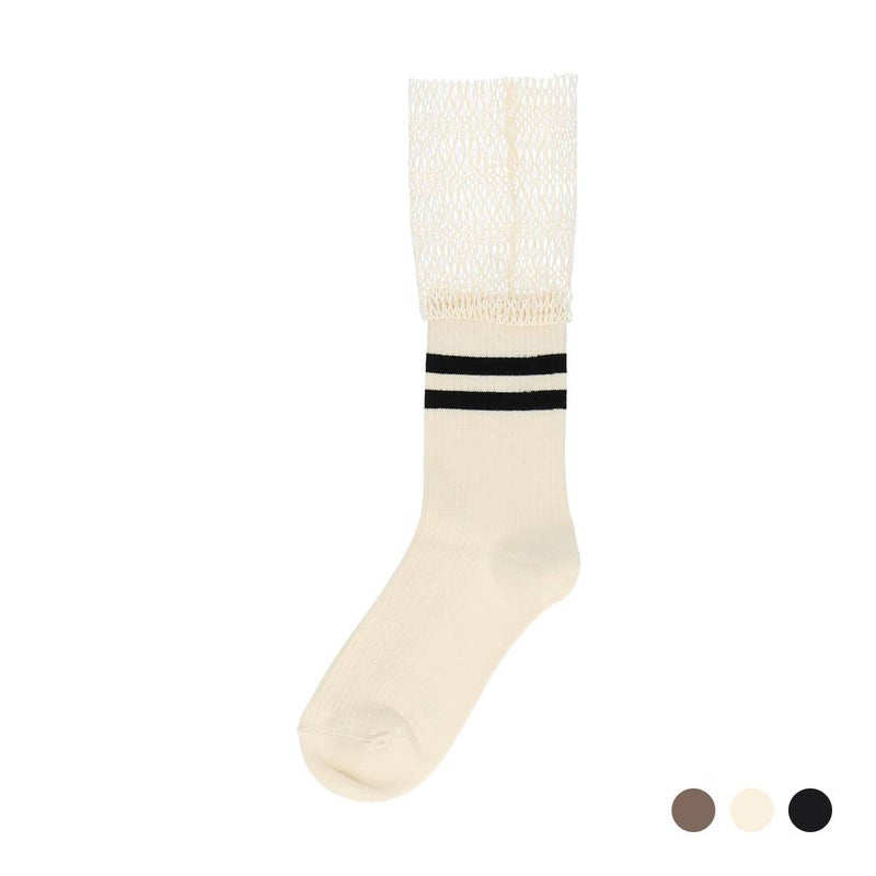 おすすめポイント履き口にメッシュが施されたラインソックス。カジュアルにもキレイめにもあう個性的なデザインです。