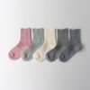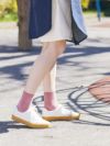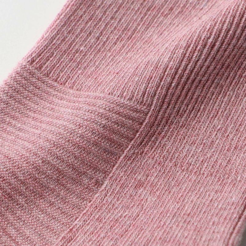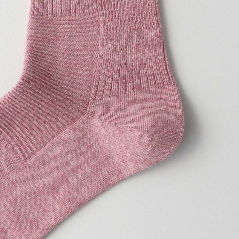 リサイクル糸 WACS®使用したリブ編みの短めクルー丈ソックスです。足に沿って伸びる編み地でフィット+たるみにくいのがポイントです。
