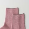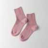 リサイクル糸 WACS®使用したリブ編みの短めクルー丈ソックスです。足に沿って伸びる編み地でフィット+たるみにくいのがポイントです。