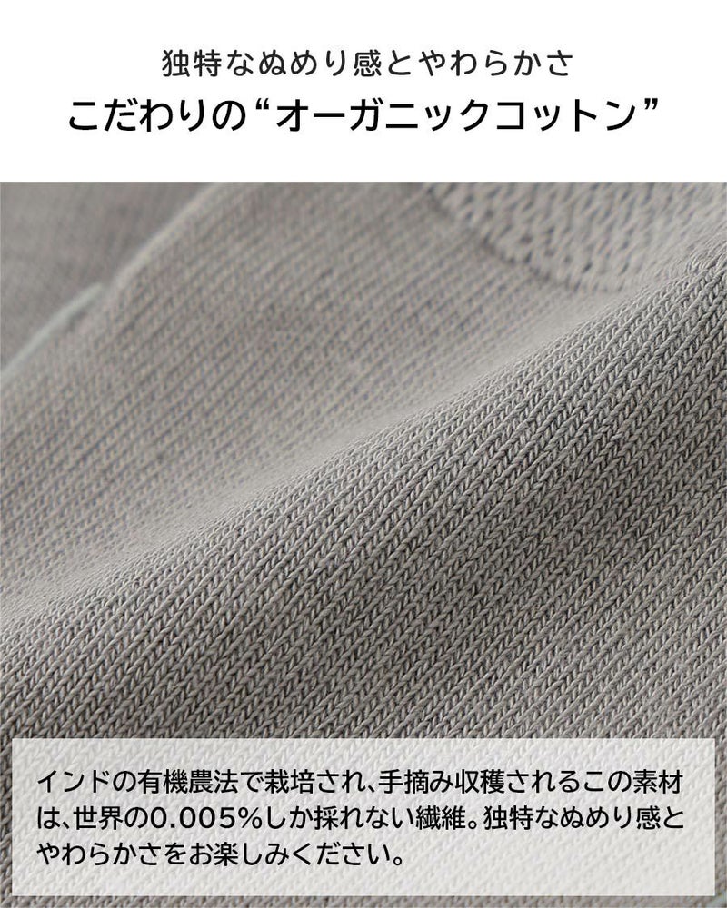 環境に配慮したオーガニックコットンを使用しています。簡単に取り外せる包装資材を採用しました。
