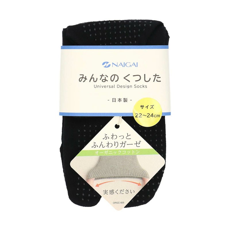 ナイガイ 履きやすい みんなのくつした ソックス ユニバーサルデザイン みんなのくつした 足袋ソックス 【締めつけない靴下】 足口ふんわり オーガニックコットン混 タビ ショート丈 足底滑り止め付き レディース 日本製 03150106