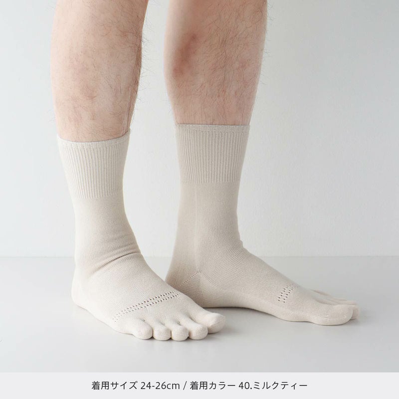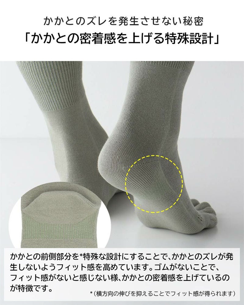 指入れのしやすさにこだわったナイガイ独自の5本指ソックスです。指先が立体的に編まれているため、足指が入れやすい「指先3D設計」と、本来の足指の形に近づけること