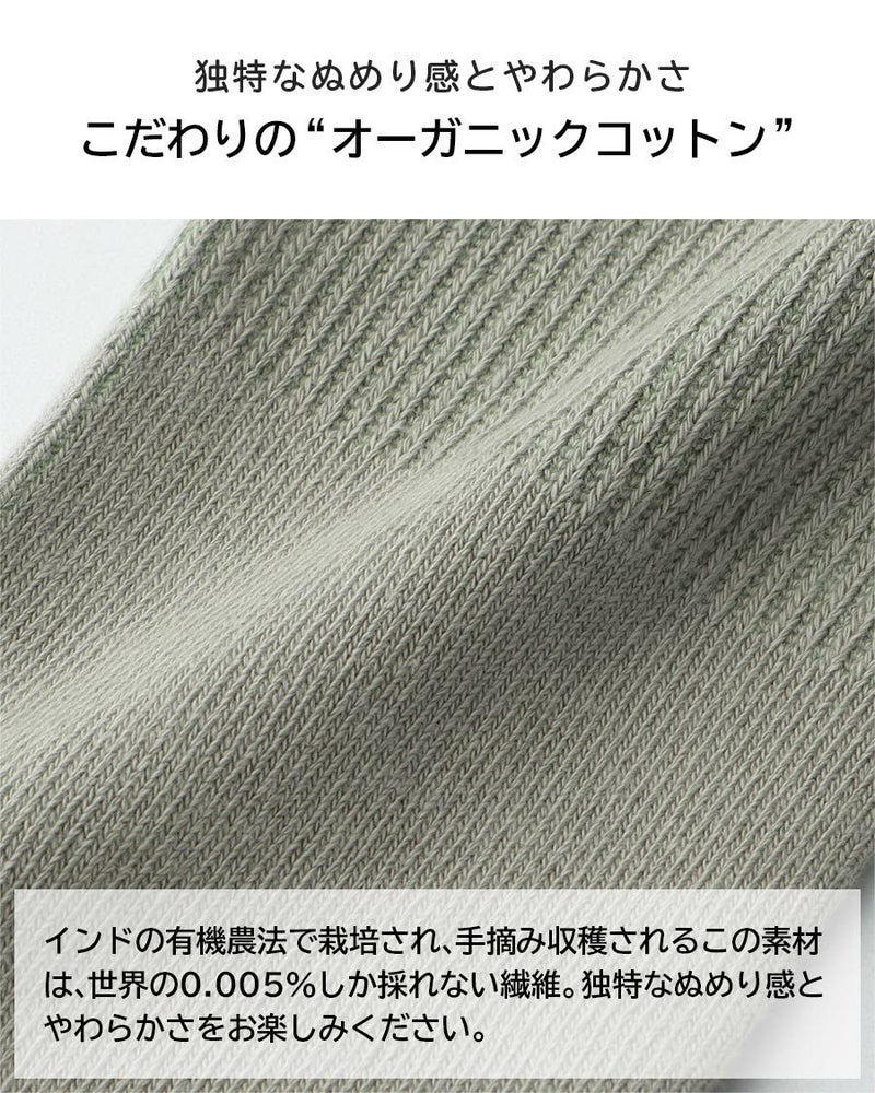 インド産超長綿オーガニックコットン混素材ですので、独特なぬめり感と足元を包み込む優しい履き心地を体感いただけます。