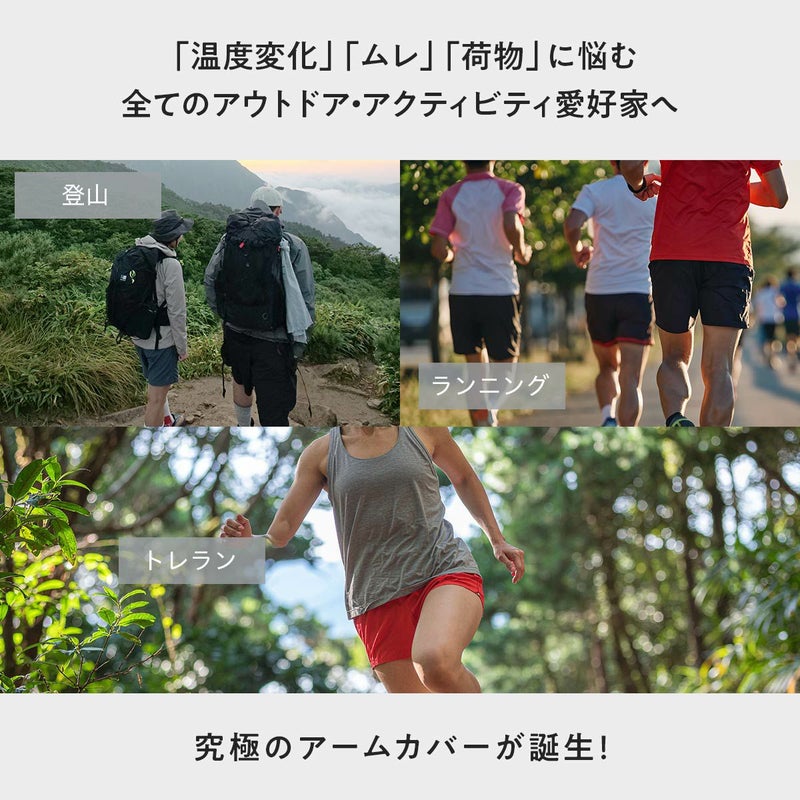 腕の上までしっかり覆えるロング丈で、半袖Tシャツと組み合わせれば腕全体をカバーでき、薄手ながらメリノウールの保温性で暖かさを感じられます。 暑くなった時は上部を二の腕あたりまで下げるだけで簡単に体温調整が可能。脱いでもかさばらない軽量設計で、ポケットにサッとしまえます。