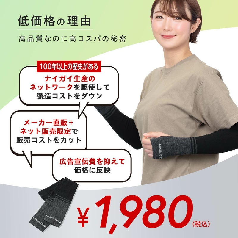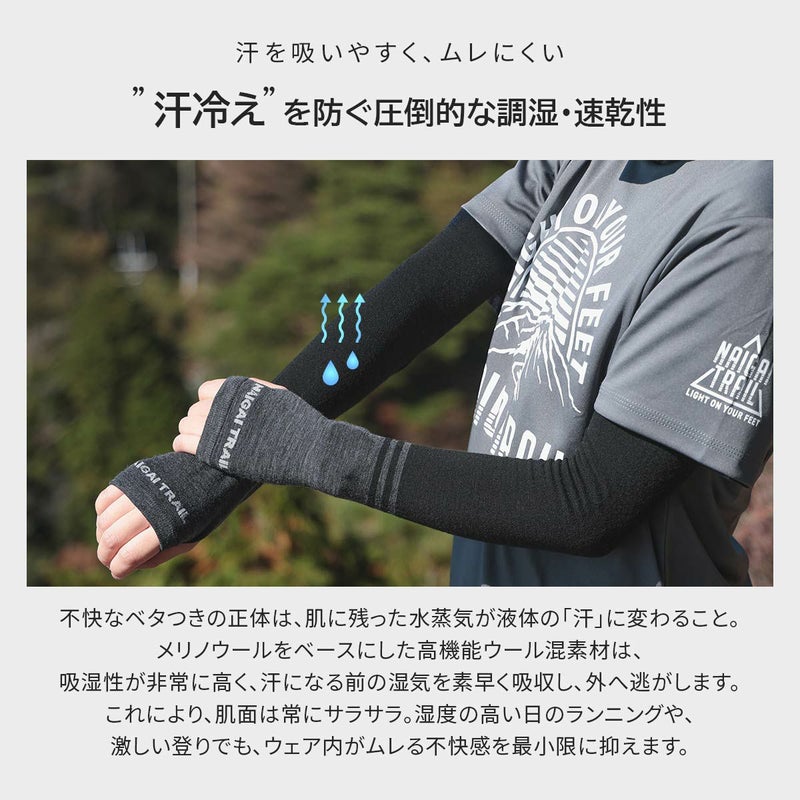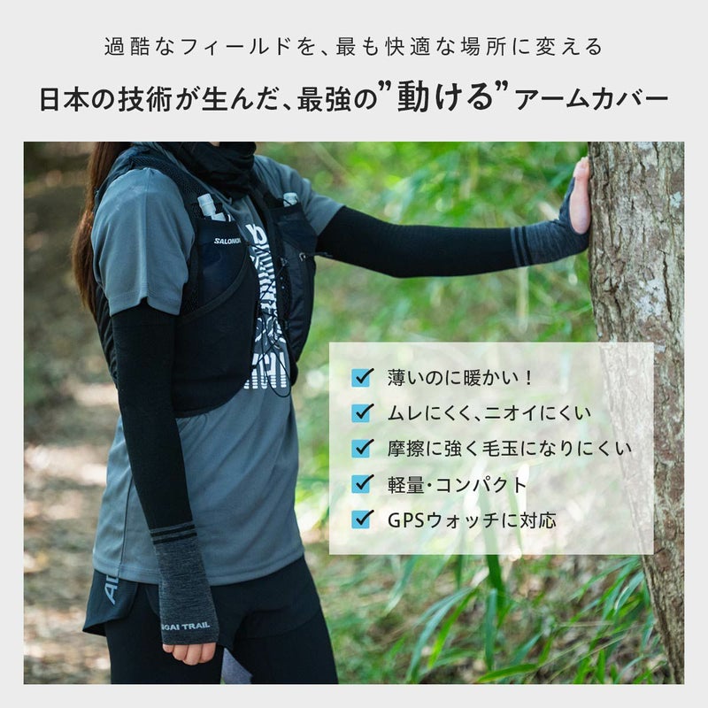 日焼け対策はもちろん、薄地なのに暖かい高機能ウール混素材を採用しているため、登山やランニングなどの温度変化が大きいシーンでも快適。