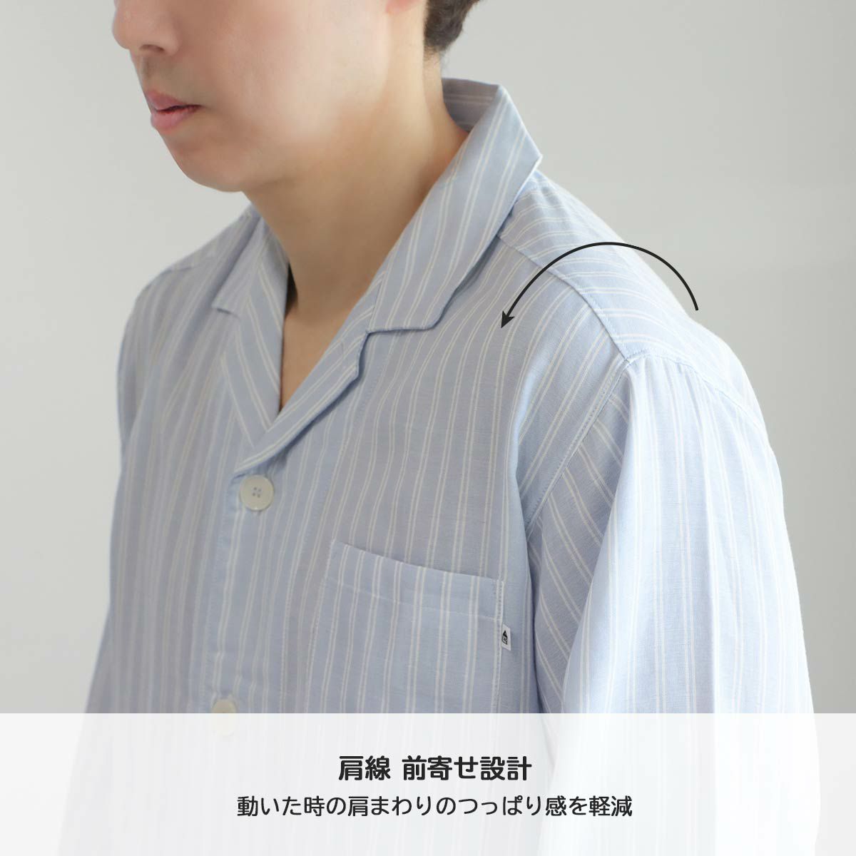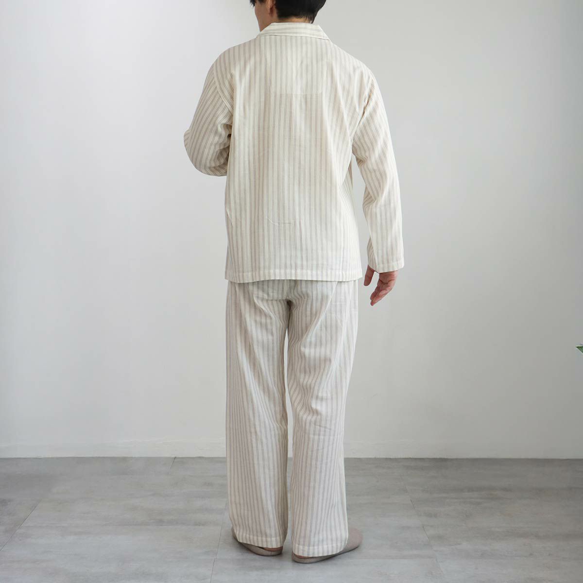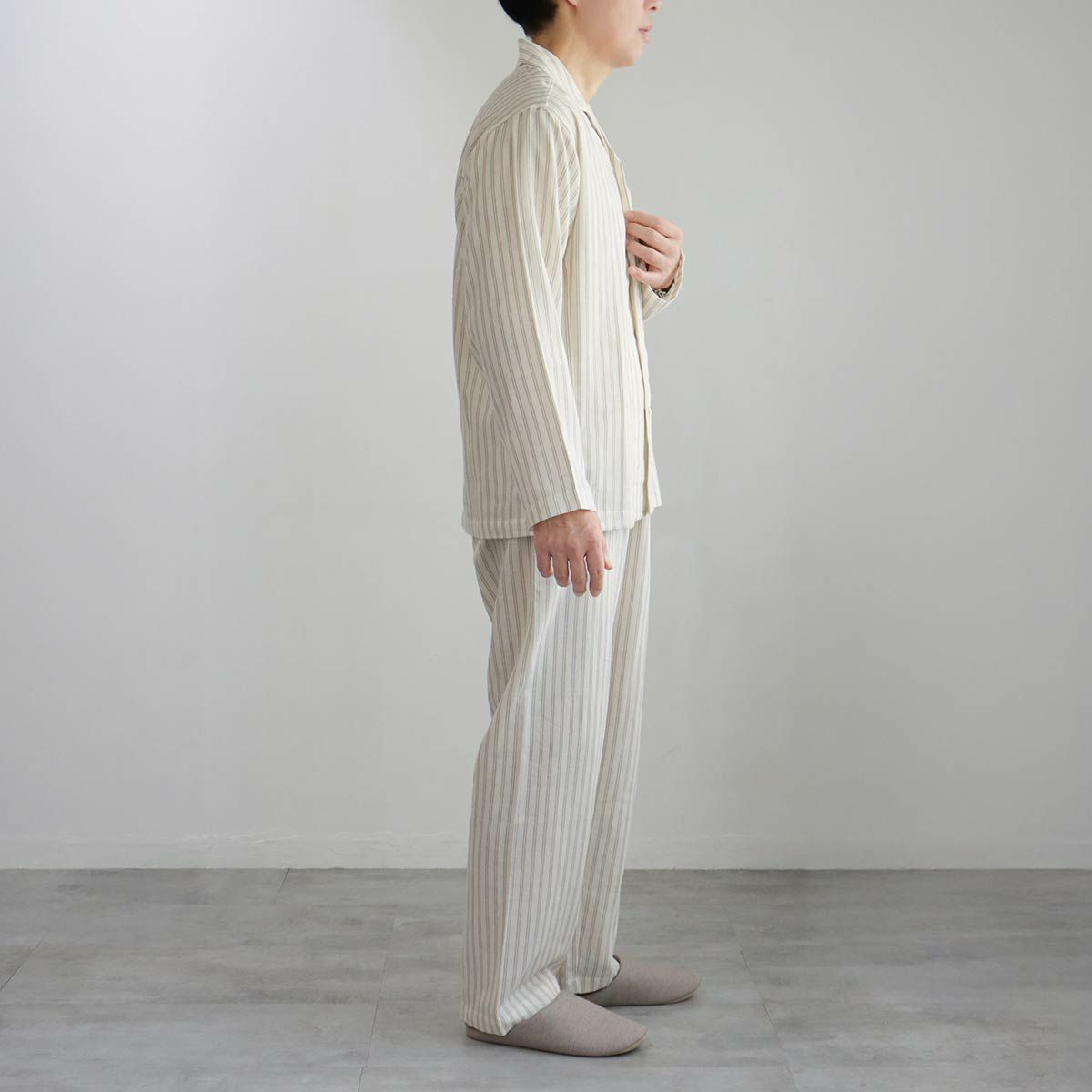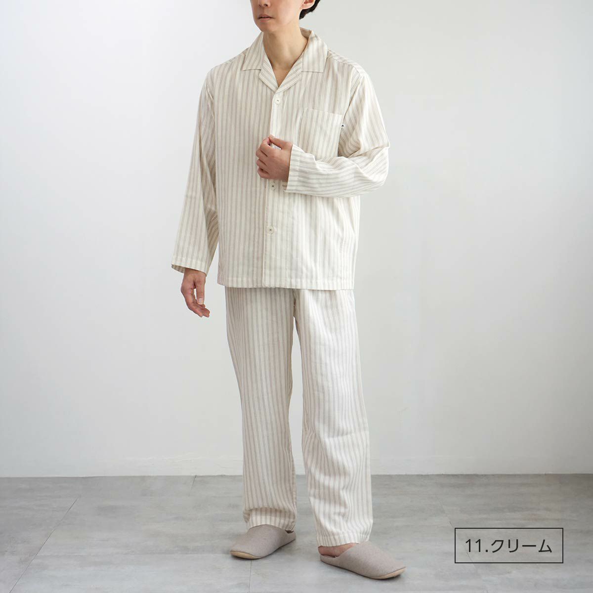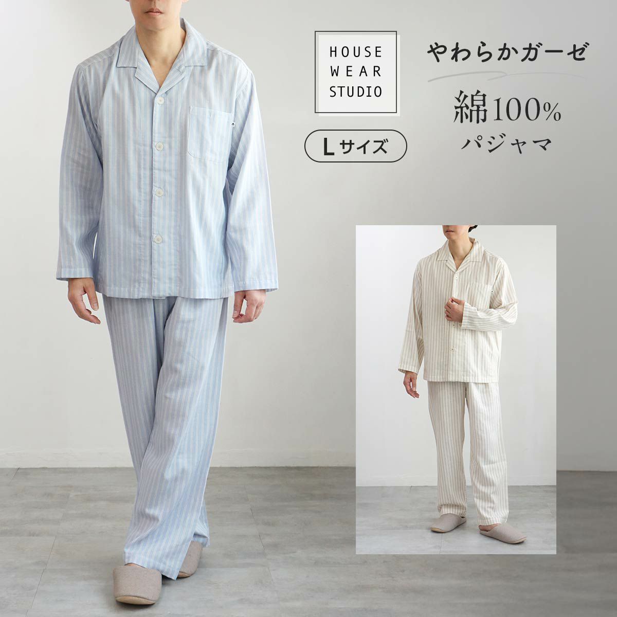 通気性に優れた コットン100% ダブルガーゼ 紳士 パジャマ ハウス ウェア スタジオ HOUSE WEAR STUDIO パジャマ 【Lサイズ】綿100% 先染2重ガーゼ ソフト加工 ストライプ 前開き 長袖 長丈パンツ メンズ 73374137