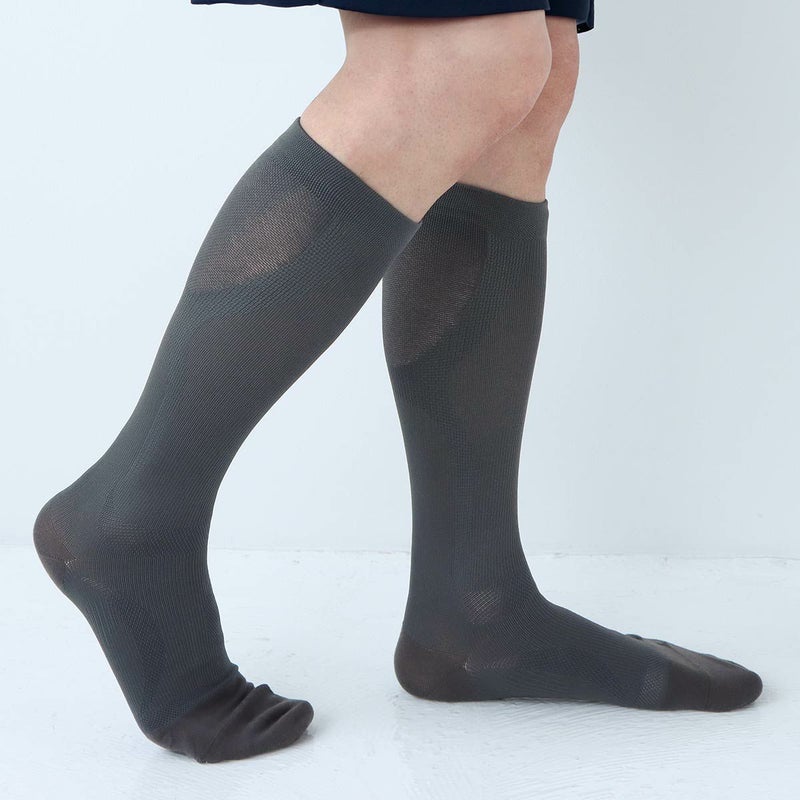 横アーチ立体編み・段階サポート設計(足首30hPa・ふくらはぎ23hPa)