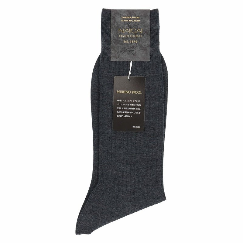 NAIGAI TRADITIONAL ナイガイ最高級の紳士靴下 スーペリオール メリノウール 毛100% 無地リブ クルー丈 メンズ 日本製 02391502