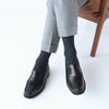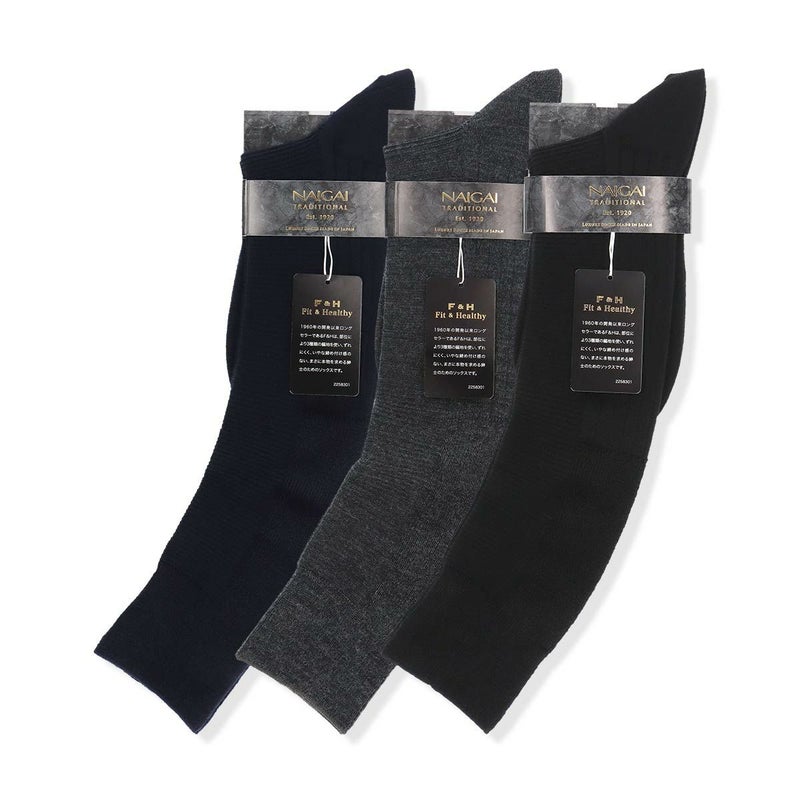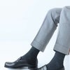 部位により3種類の編地(パール編み、リブ編み、平編み)を使い、ずれにくく、いやな締め付け感のない、まさに本物を求める紳士のためのロングセラーの「毛混」メンズソックスです。