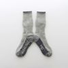 この靴下企画のコンセプトはメリノウールを多く使いながら登山用靴下としての品質機能面に優れ、さらにお財布にも優しい価格設定を目指ざしたもので、当初は肌に当たる部分の糸使いはメリノウール30%の予定でしたが、糸屋さんとも交渉を重ねてコストダウンを達成、メリノウール70%まで混率アップを実現しました。靴下を裏返してパイル部分に触れていただくとメリノウール特有の柔らかさと温もりを感じられると思います。