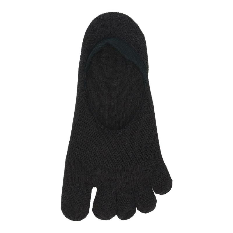 『親指セパレート設計』親指と人差し指の間をあけ、本来の足指の形に近づけることで着用時のつっぱり感を軽減する快適フィット設計です。(特許番号 6677690)