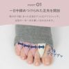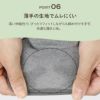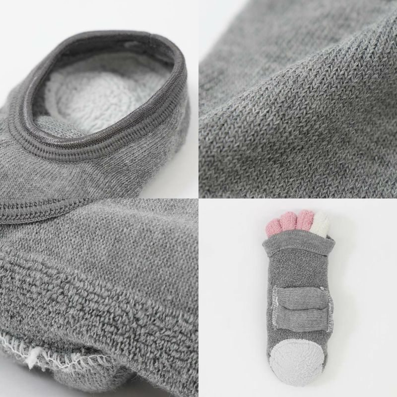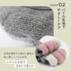パンプスの中で縮こまった足指をパイルのループを使ってグッと広げます。足底にクッションがあり、着用するだけで気持ち良く刺激を与えます。かかと部分にはシートが付いているので、保湿クリームを塗った かかとを包み込み しっとり感をキープしやすいのもポイント。