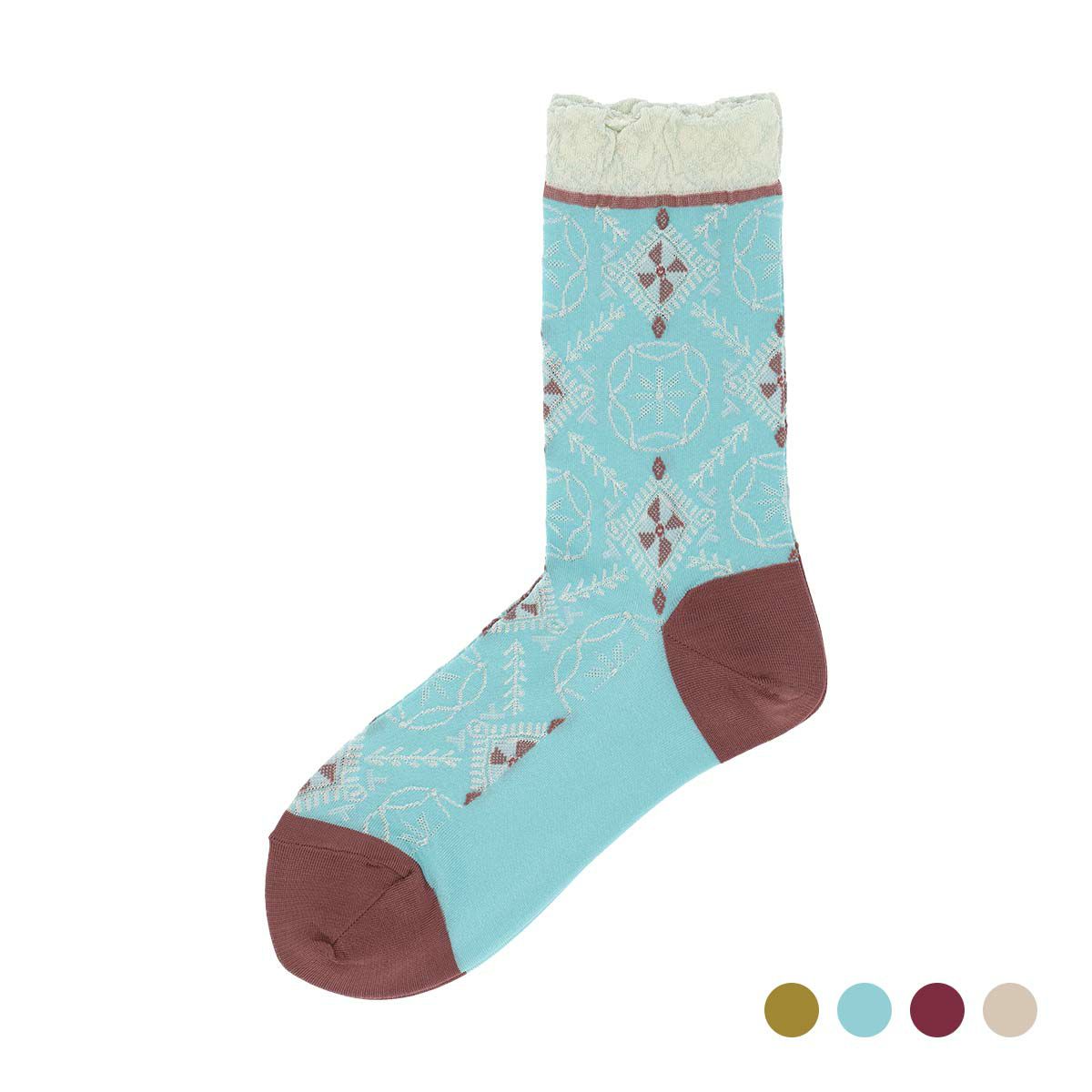 ナイガイ スタイル 日本製 靴下 女性 婦人 NAIGAI STYLE エスニックフロート クルー丈 レディース ソックス 日本製 03097104