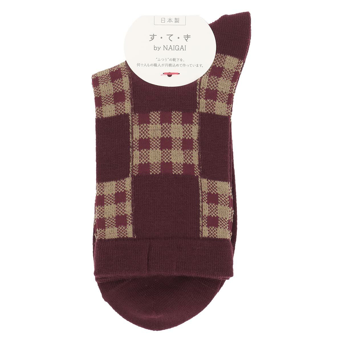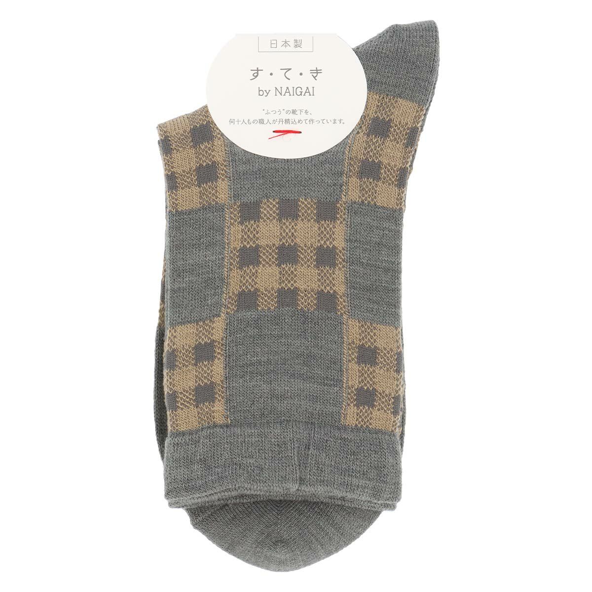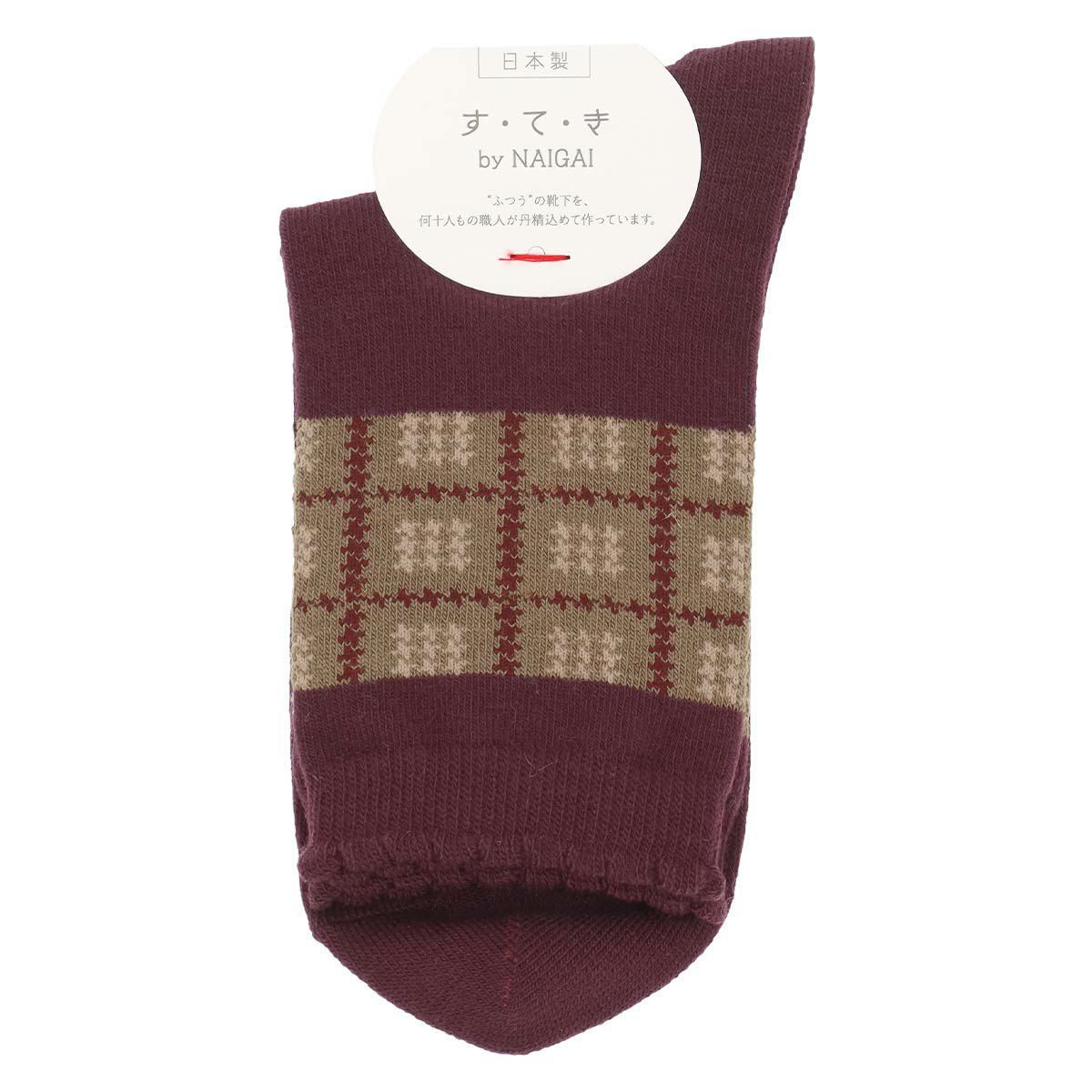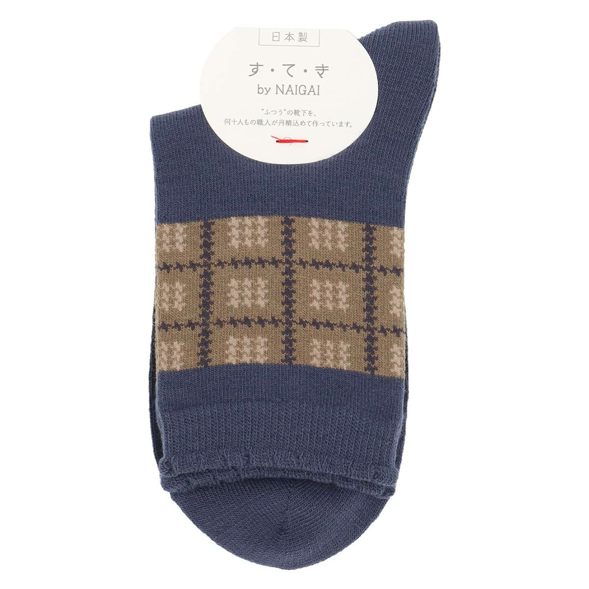 すてき 日本の靴下 婦人 女性 す・て・き by NAIGAI 日本製 くちゴムゆったり レトロ千鳥 クルー丈 ソックス レディース 03878310
