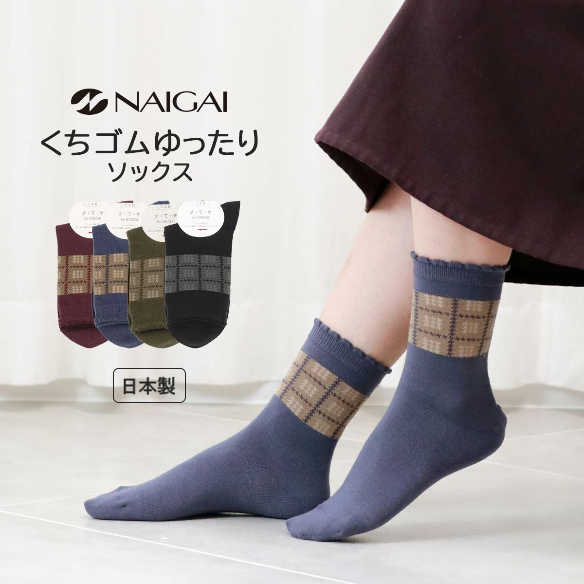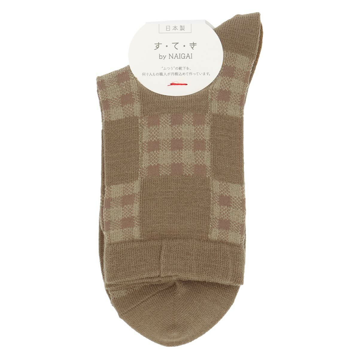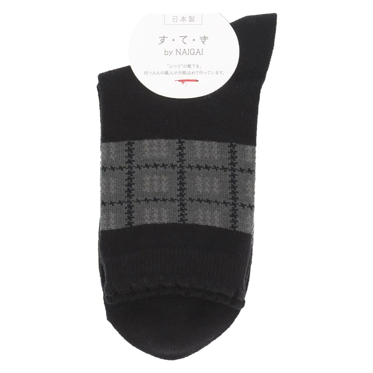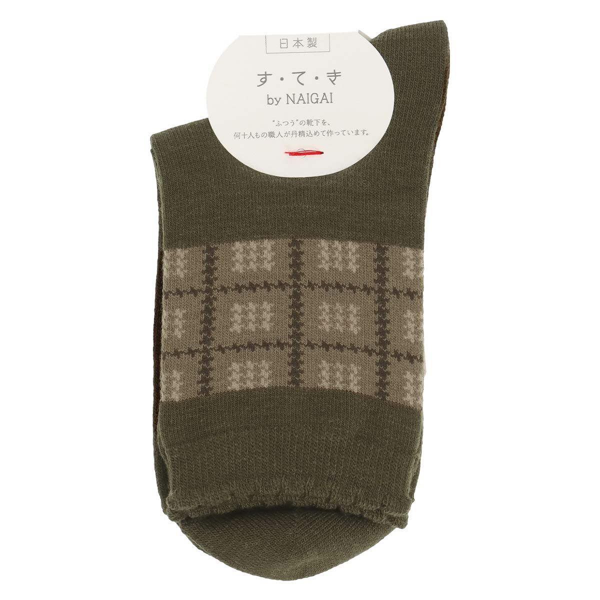 すてき 日本の靴下 婦人 女性 す・て・き by NAIGAI 日本製 くちゴムゆったり レトロ千鳥 クルー丈 ソックス レディース 03878310