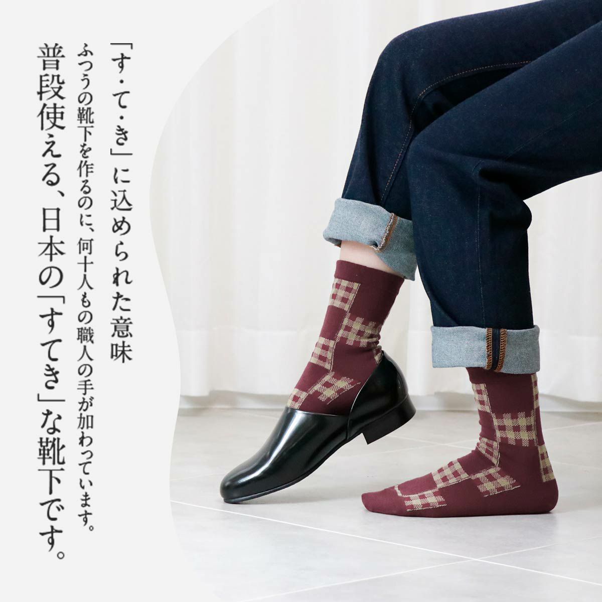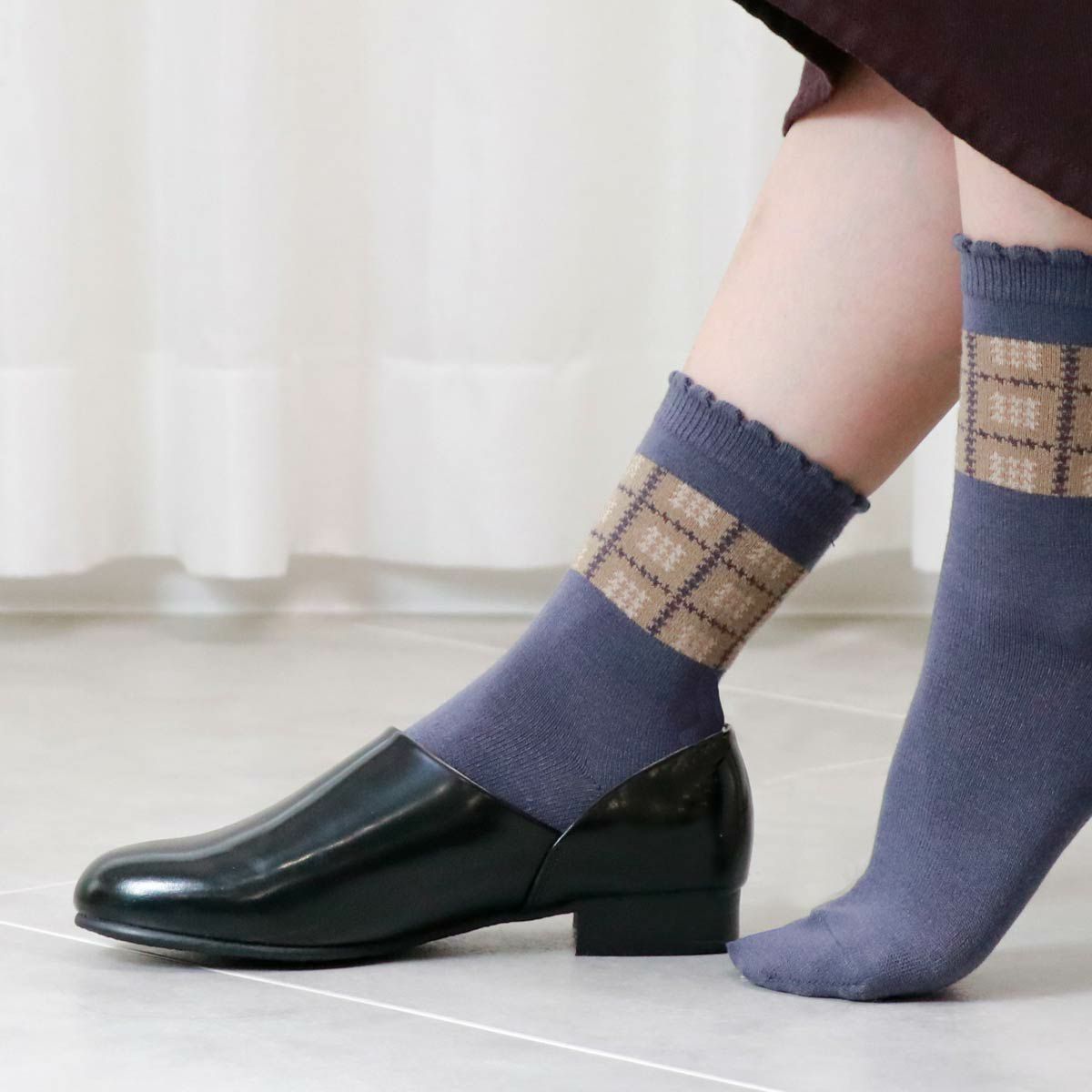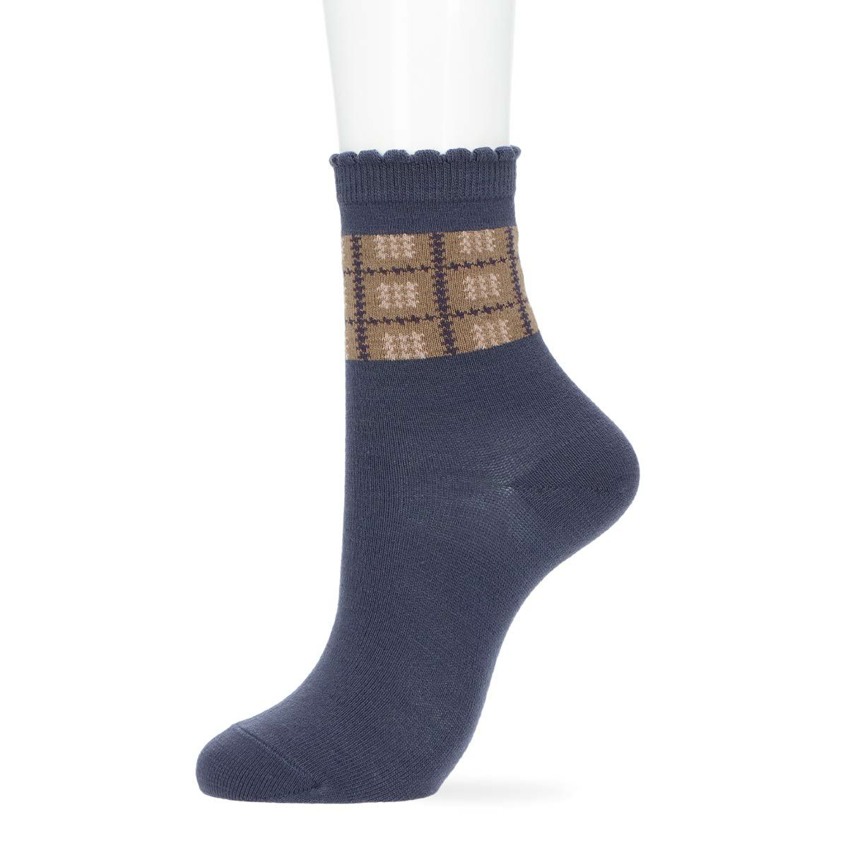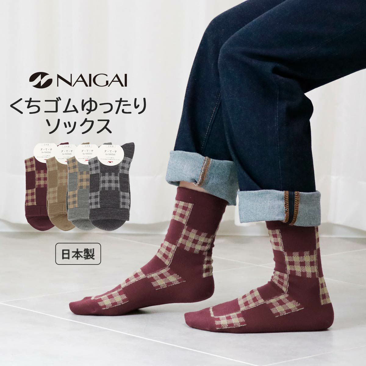 すてき 日本の靴下 婦人 女性 す・て・き by NAIGAI 日本製 くちゴムゆったり レトロ千鳥 クルー丈 ソックス レディース 03878310