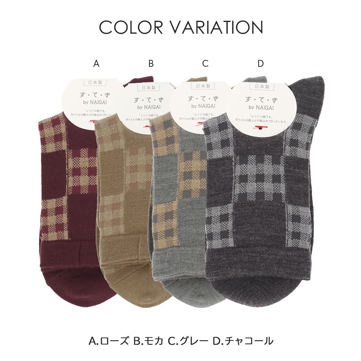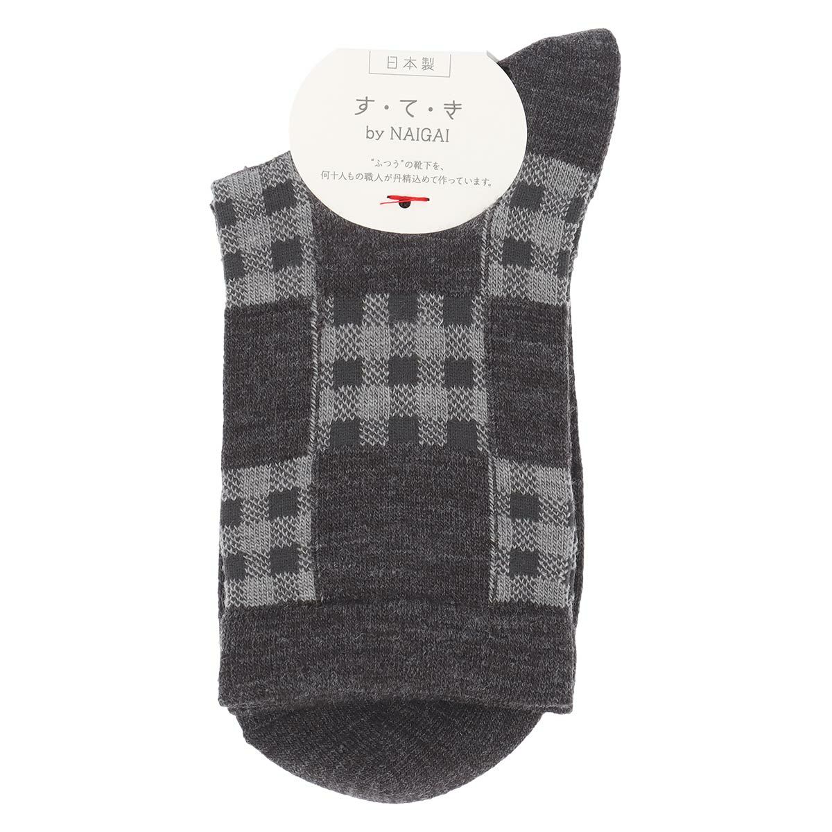 すてき 日本の靴下 婦人 女性 す・て・き by NAIGAI 毛混 くちゴムゆったり スパイラルブロック クルー丈 日本製 ソックス レディース 03878311
