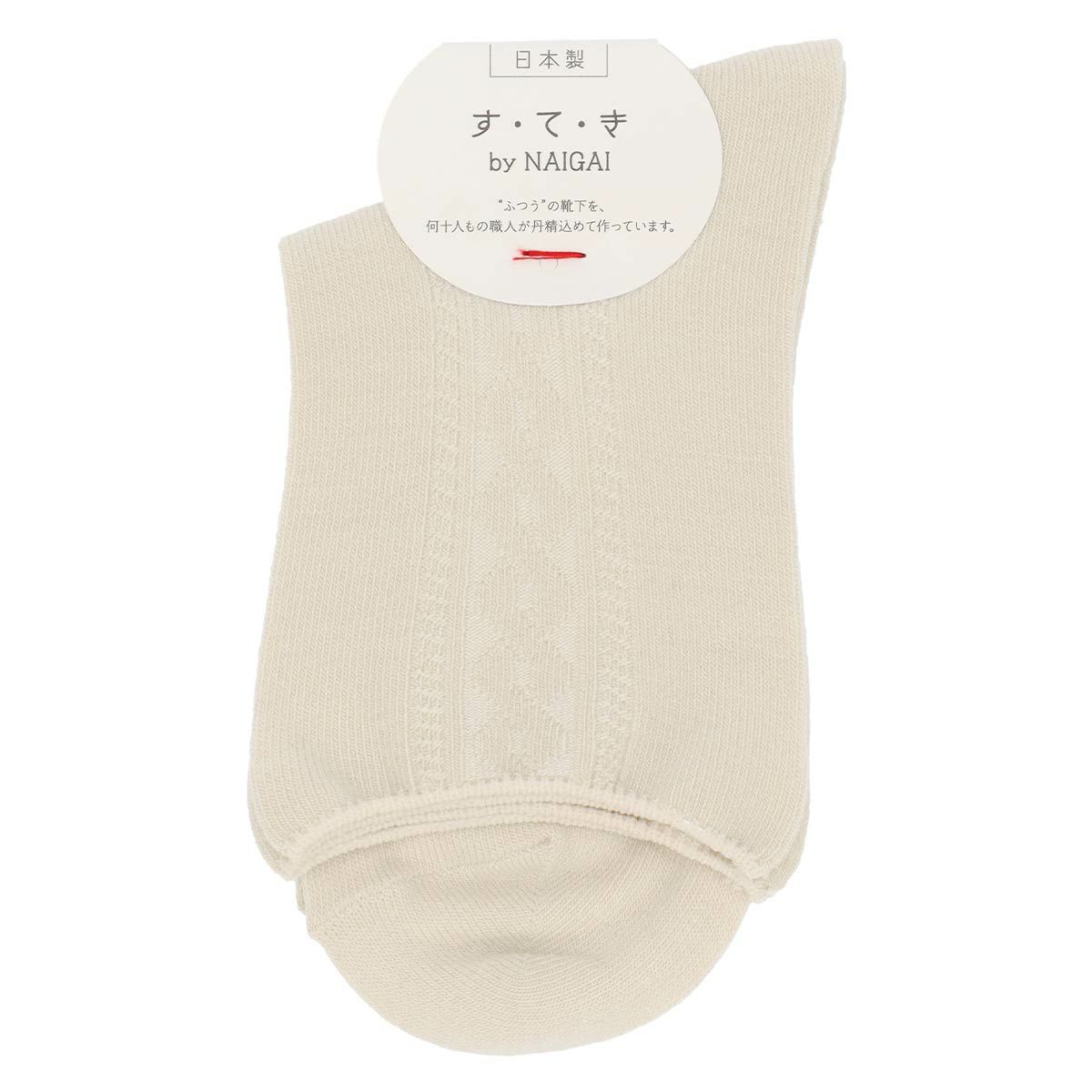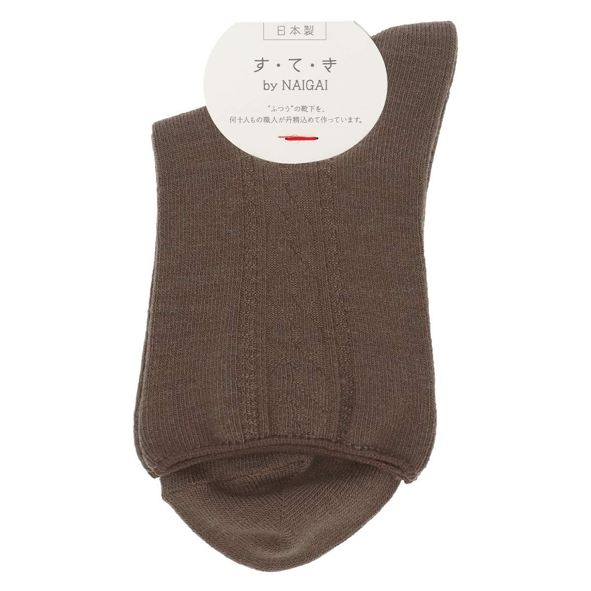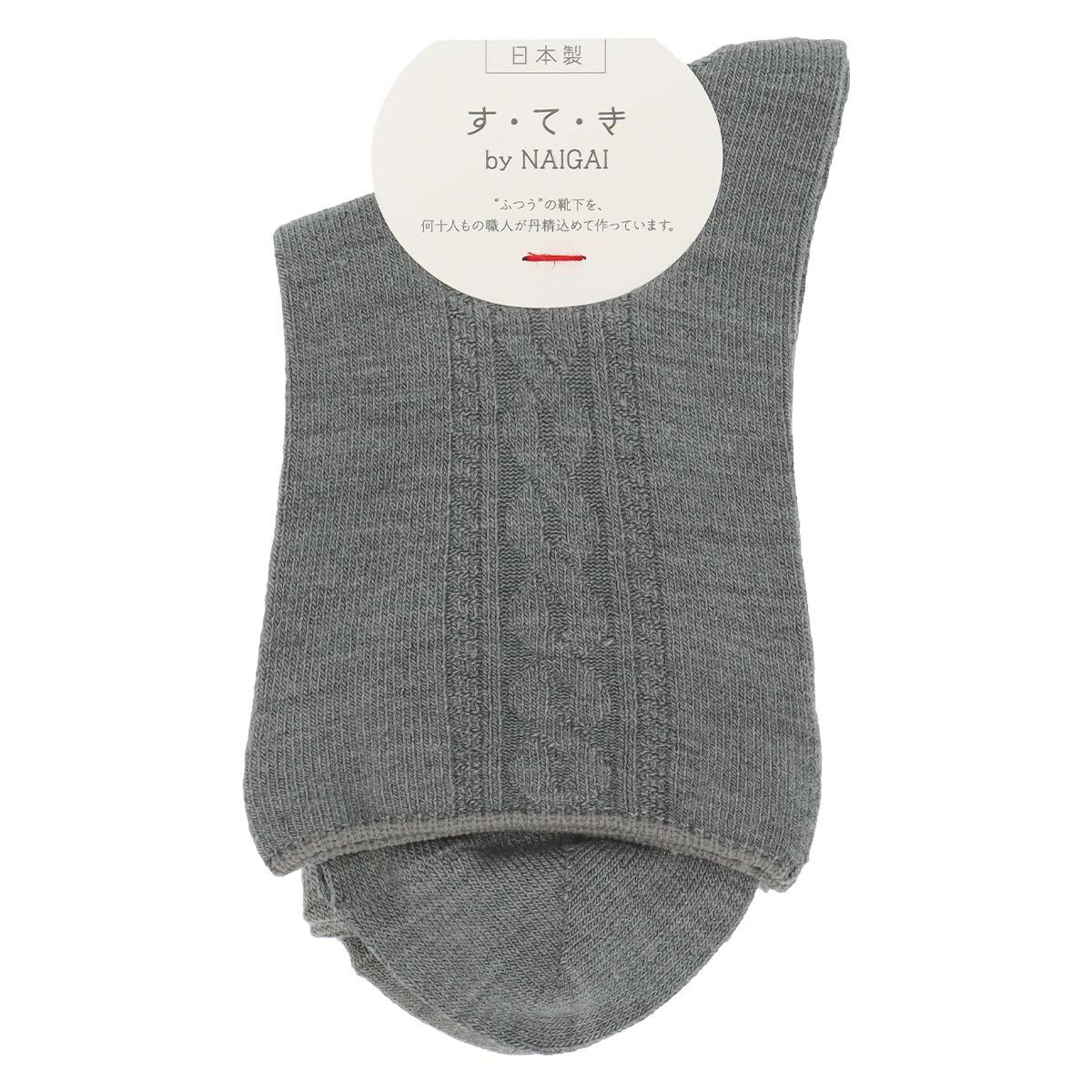 すてき 日本の靴下 婦人 女性 す・て・き by NAIGAI 毛混 くちゴムゆったり テーパー仕様 ウォームケーブル クルー丈 日本製 ソックス レディース 03878312