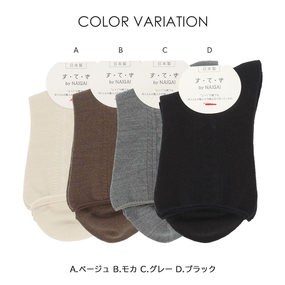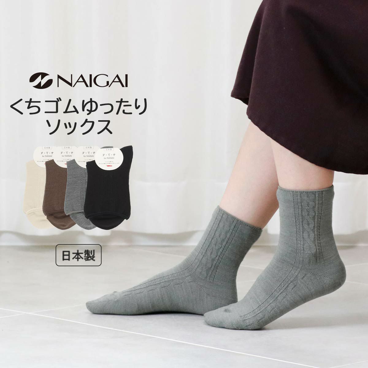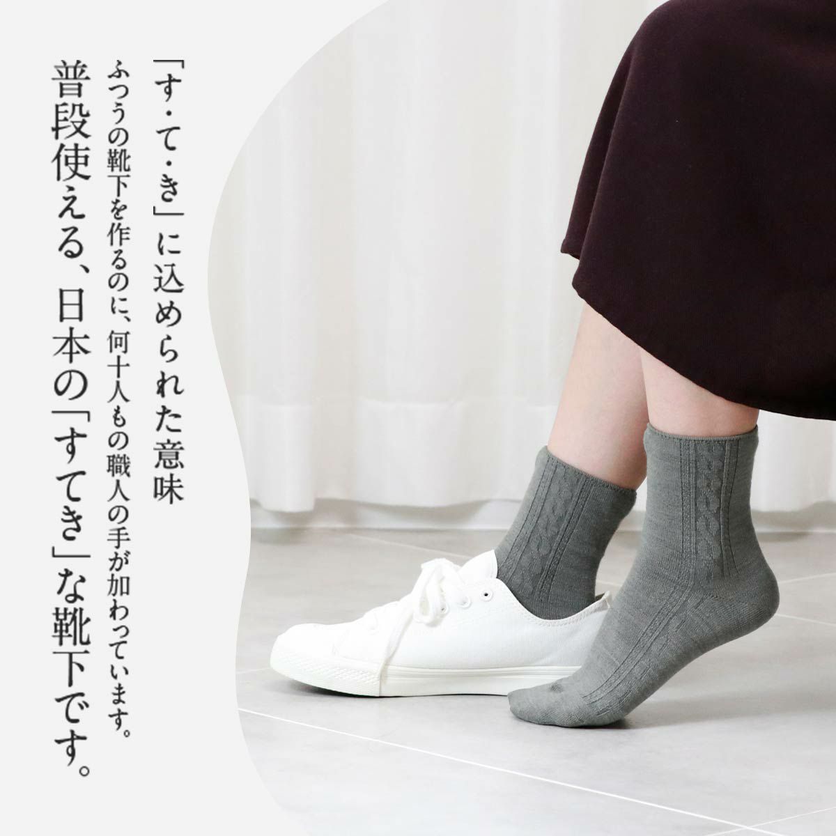 すてき 日本の靴下 婦人 女性 す・て・き by NAIGAI 毛混 くちゴムゆったり テーパー仕様 ウォームケーブル クルー丈 日本製 ソックス レディース 03878312