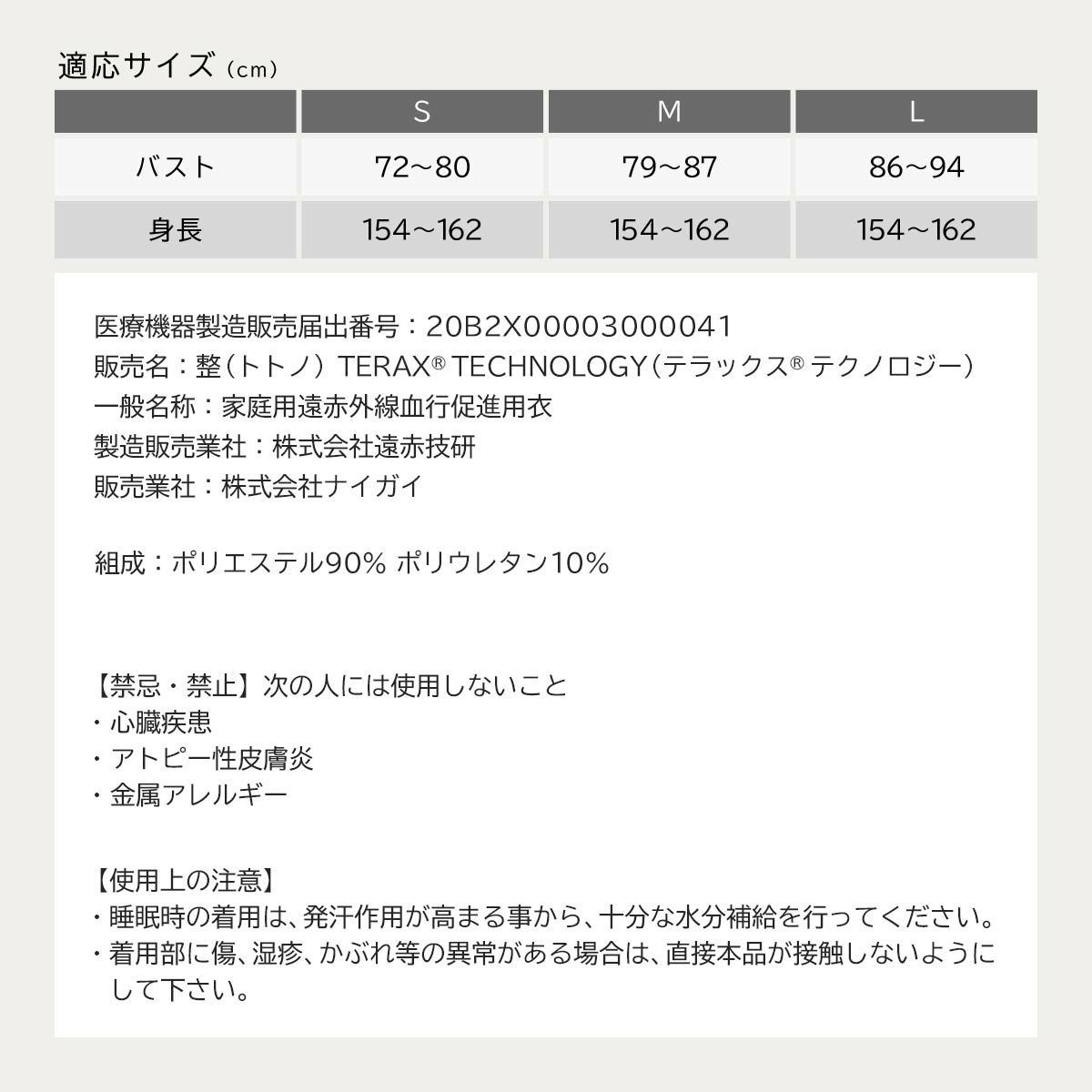 他の画像を見る NEW レディース トトノ 着るだけで疲労回復をサポート 機能性ウェア 手軽にからだメンテナンス 整 TOTONO Healing wear レディース 長袖Tシャツ リカバリーウェア 疲労回復 遠赤外線 血行促進 一般医療機器 TERAX TECHNOLOGY(テラックス テクノロジー) トトノ 保温 あたたかい 73210001 通常価格 ¥ 9,900 販売価格 ¥ 9,900 税込 販売期間 2025/09/26 12:00 〜 詳細を見る お気に入りに登録する 5.00 (1)