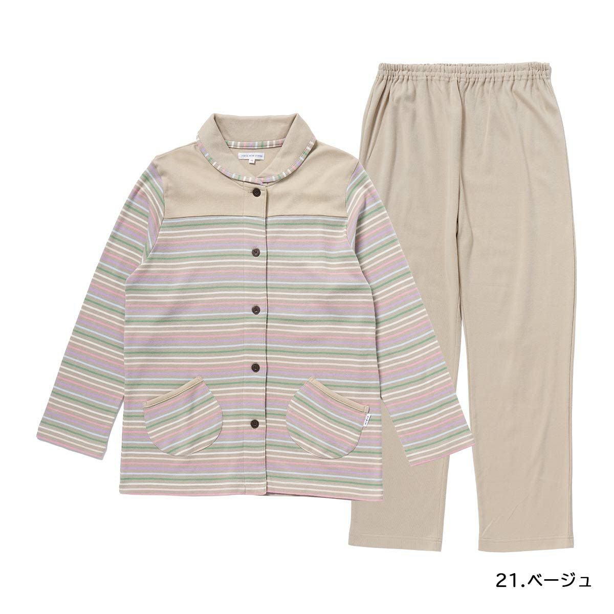 他の画像を見る ナイガイオリジナルブランド 婦人 前ボタン HOUSE WEAR STUDIO 綿100% 30スムース パジャマ エスポワールボーダー 長袖 長丈パンツ【Mサイズ】 レディース 73378472 通常価格 ¥ 14,300 販売価格 ¥ 14,300 税込 (0) 詳細を見る お気に入りに登録する