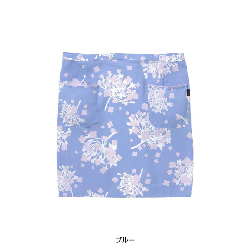 デザイン面では、優雅なダンデライオン(タンポポ)柄が特徴で、どの色も明るく華やかな印象を与えます。後ろで結ぶタイプのため、前面には便利なポケットが左右に付いております。