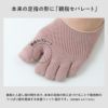 『親指セパレート設計』親指と人差し指の間をあけ、本来の足指の形に近づけることで着用時のつっぱり感を軽減する快適フィット設計です。(特許番号 6677690)
