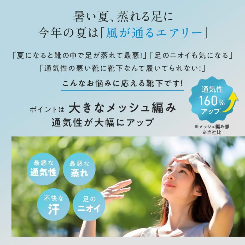 ・メッシュ編み(メッシュ編み部:通気性160%(当社比))