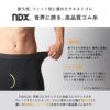 NDXはナイガイが開発した高品質ゴム糸です。その特徴はソフトに伸びて速やかに縮むことで、締めつけが強くなくてもズレ落ちない快適な着用感です。さらに耐洗濯性(洗剤、漂白剤に強い)や耐候性(光、オゾン)に優れ抜群の耐久性を誇ります。