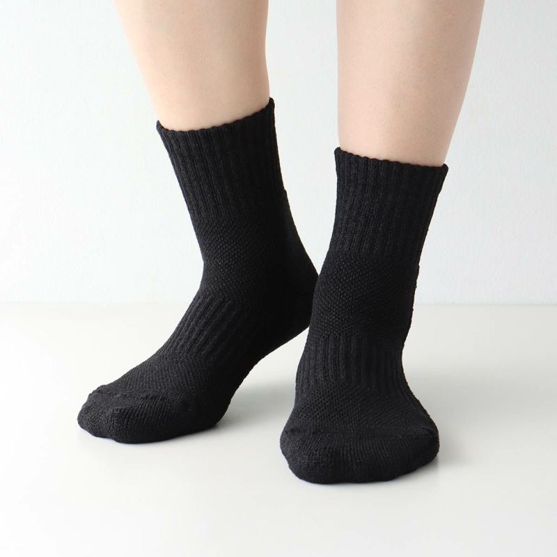 足底部分にクッション性のあるパイル編みを施し、快適な履き心地を提供します。