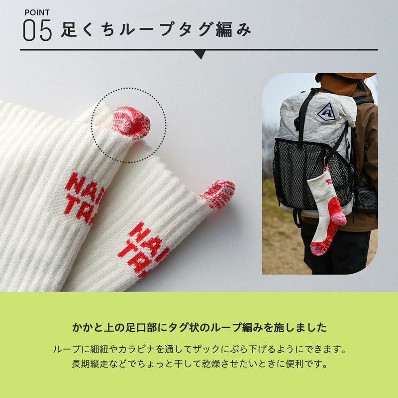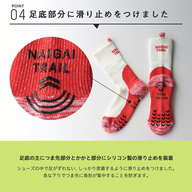 ナイガイトレイル 送料無料 ソックス 山登り トレッキング ロングトレイル 富士登山 パイル編 NAIGAI TRAIL メリノウール混 2重リブ 登山用靴下 総パイル 足口ループ付 クルー丈 足底滑り止め付き 【365日最短翌日発送】 90370007