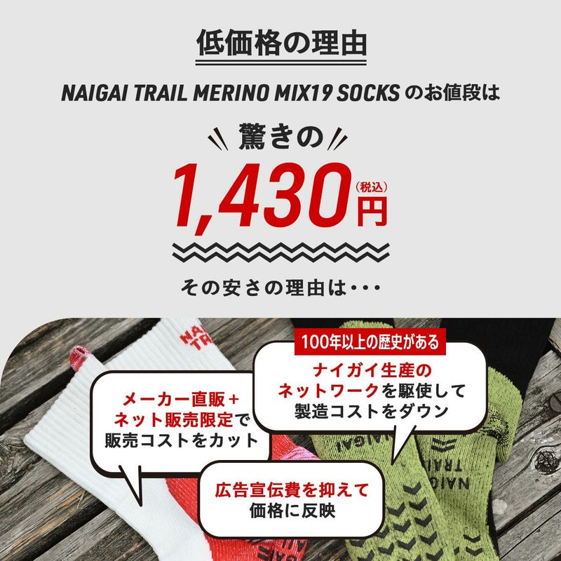100年以上にわたり靴下を作り続けてきた老舗メーカー「ナイガイ」が、アウトドア・登山・トレイルランニングに本気で向き合うために生み出した本格仕様のアウトドアアイテムブランドです。