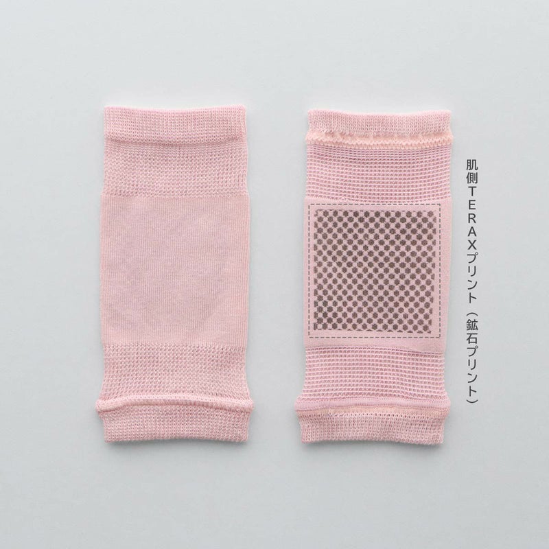 TERAX CARETECT®(テラックス ケアテクト®):遠赤外線(テラヘルツ光波含む)を放出する鉱石をプリントした進化系素材。締め付けず包む優しいはき心地。特殊プリント加工は生地の内側・ふくらはぎ部分のみに施されています。