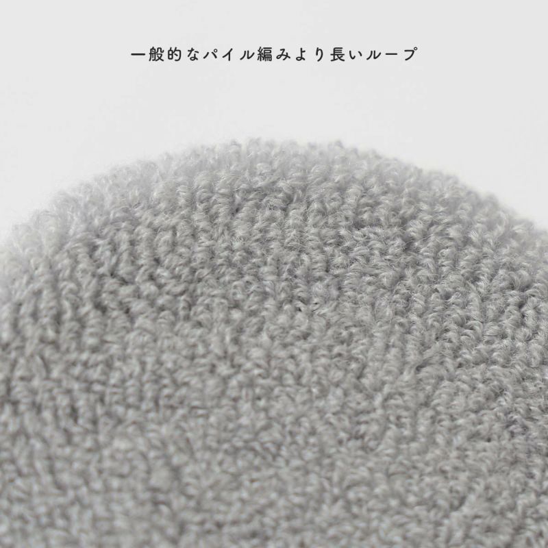 ハマグリ パイル は内側がロングループのパイル編みになっており、普通のパイル編みの靴下よりパイルが長く、厚く作られています。この長いパイルと肌の間に空気をため込むことで、高い保温性を発揮し、床からの冷気を防いで足もとを温めます。また、ふかふかなロングループにより、クッション性にも優れており、履き心地が快適です。