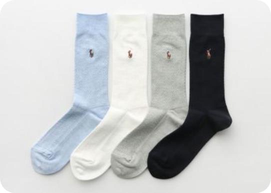 POLO RALPH LAUREN オーガニックコットン混 鹿の子編み ワンポイント刺繍 カジュアル クルー丈 ソックス メンズ